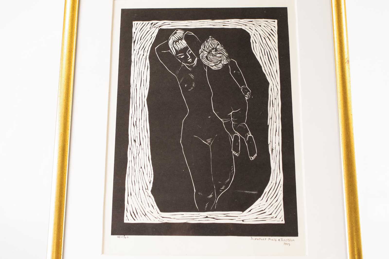 Auktioner Konst & Grafik TAVLA, oidentifierad konstnär, litografi, signerad samt daterad. 23x31cm bildmått