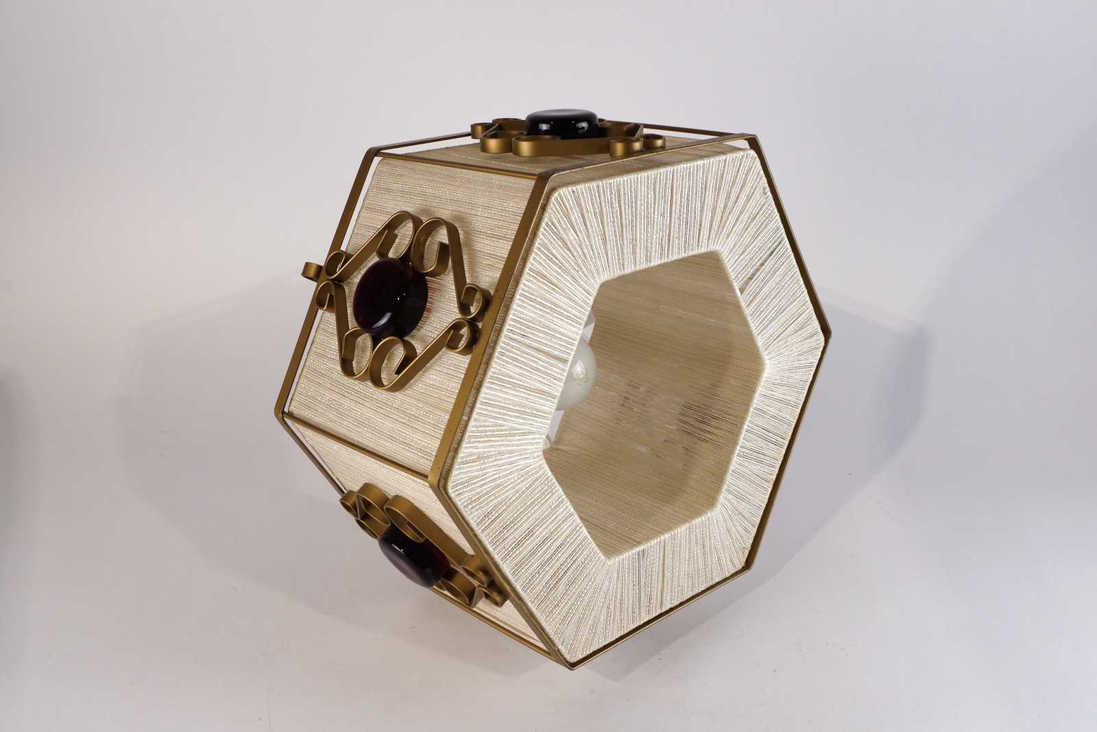 TAKLAMPA äldre, glas & smide. B:34cm.