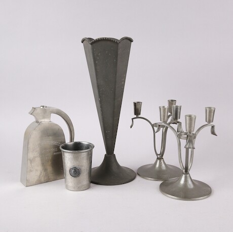 Förgylld reliefdekor av druvor och vinblad, på tre ben, diameter ca 10,5, längd 13 cm