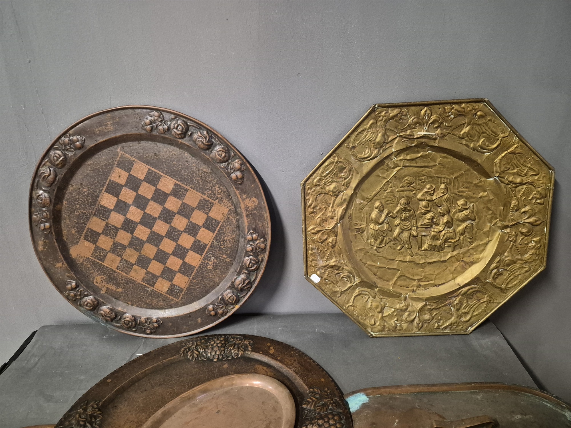 Parti metall bl.a brickor koppar/mässing, största mått 60 cm