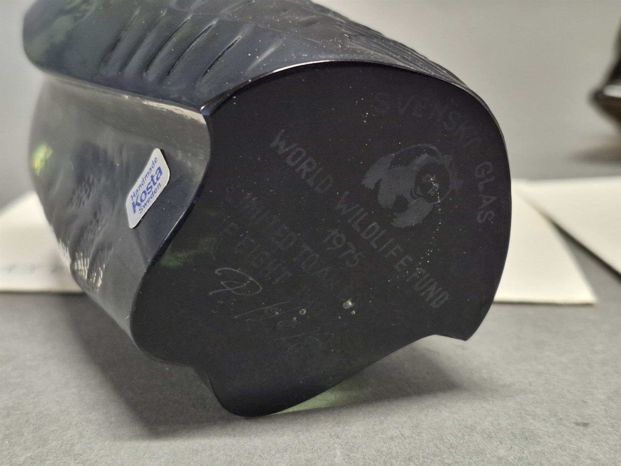 Bilder Konstglas 3 st P.Hoff Kosta, pilgrimsfalk, igelkott och lövgroda, limited edition för WWF, högsta höjd 17 cm
