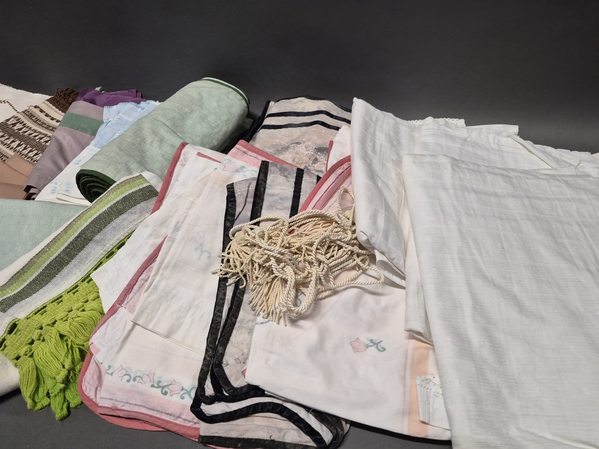 Auktioner Mattor & Textil Parti textilier bla dukar och gardiner, någon fläck/missfärgning kan förekomma