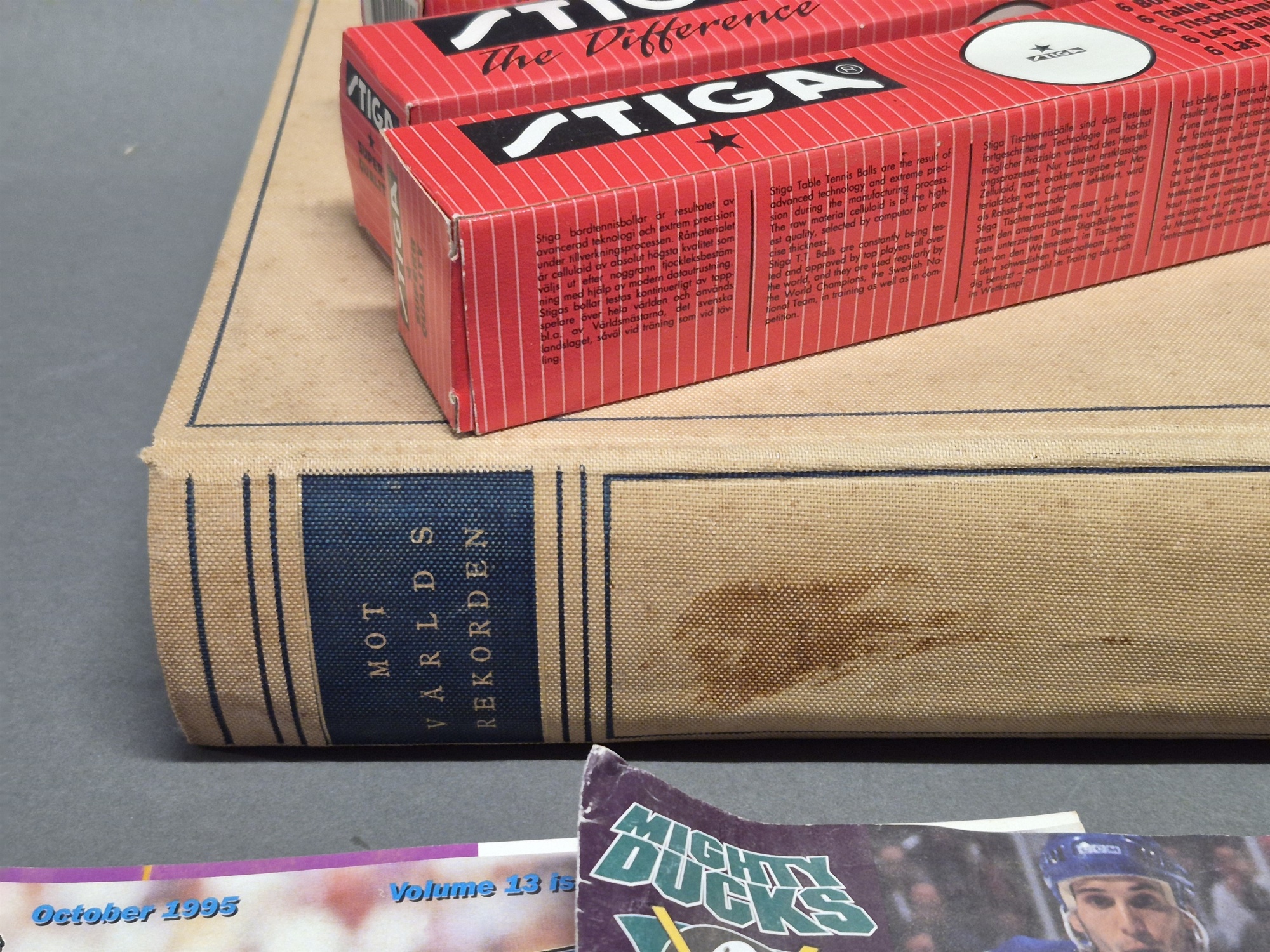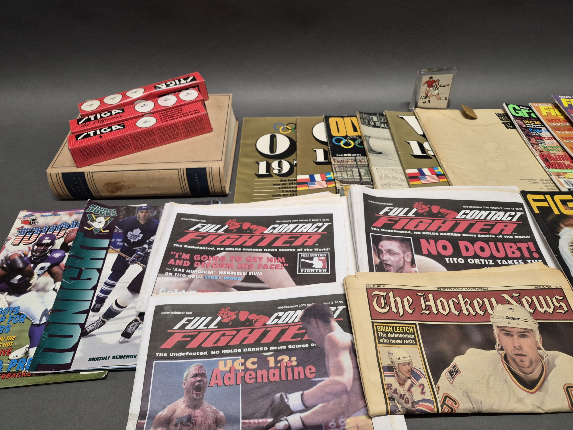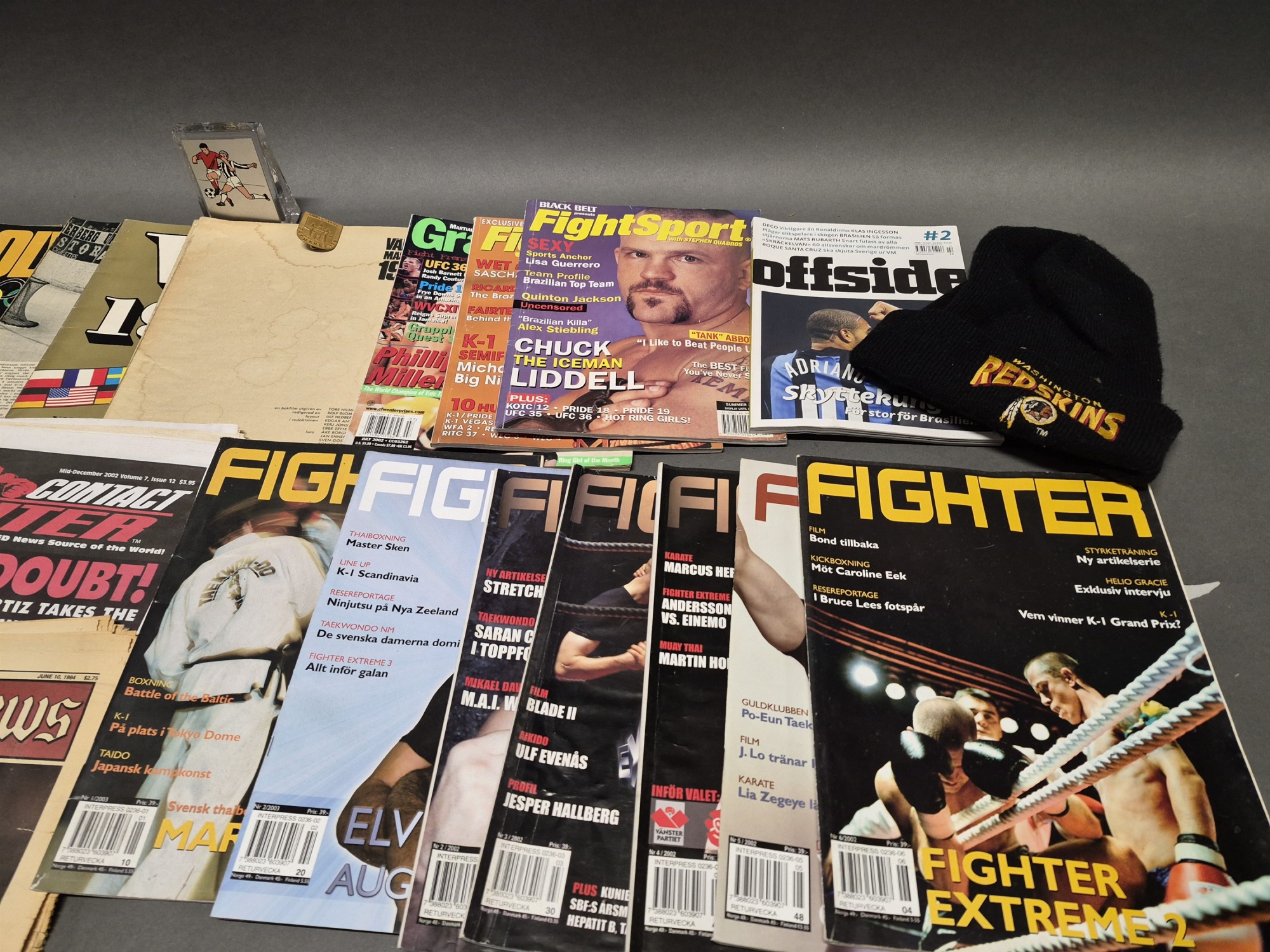 Bilder Parti sportläsning och tillbehör bla tidsskrifter och mössa "Redskins"