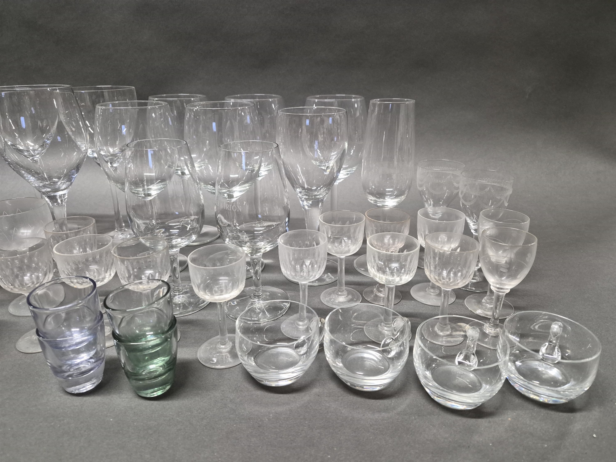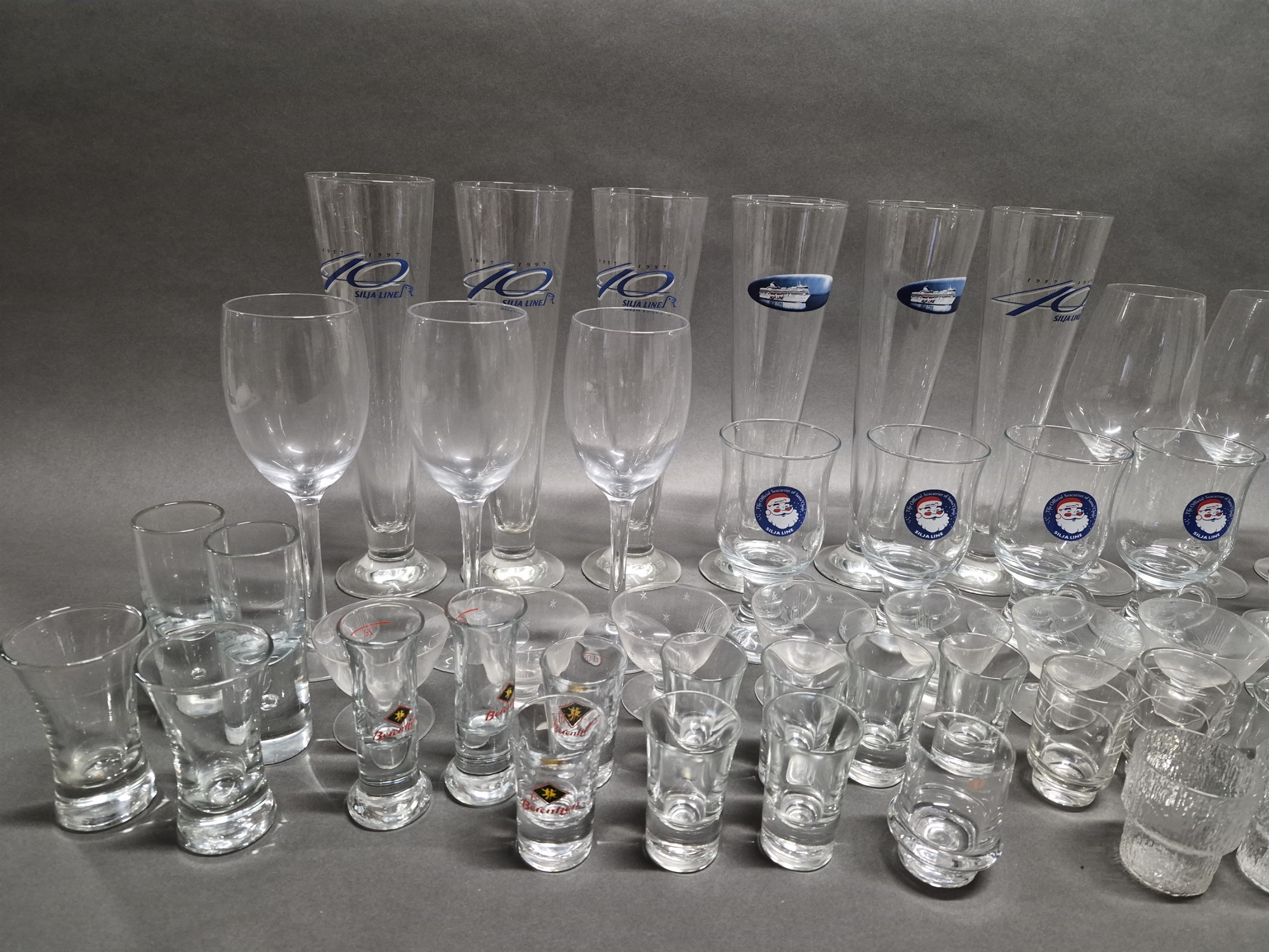 Parti glas bla ölglas, vinglas kristall och snapsglas, högsta höjd 28 cm