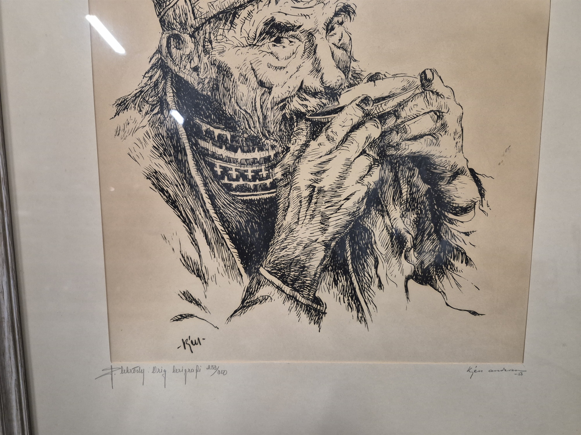 Bilder Kjell Andersson litografier 2 st "Samer" mått 48 x 62 cm