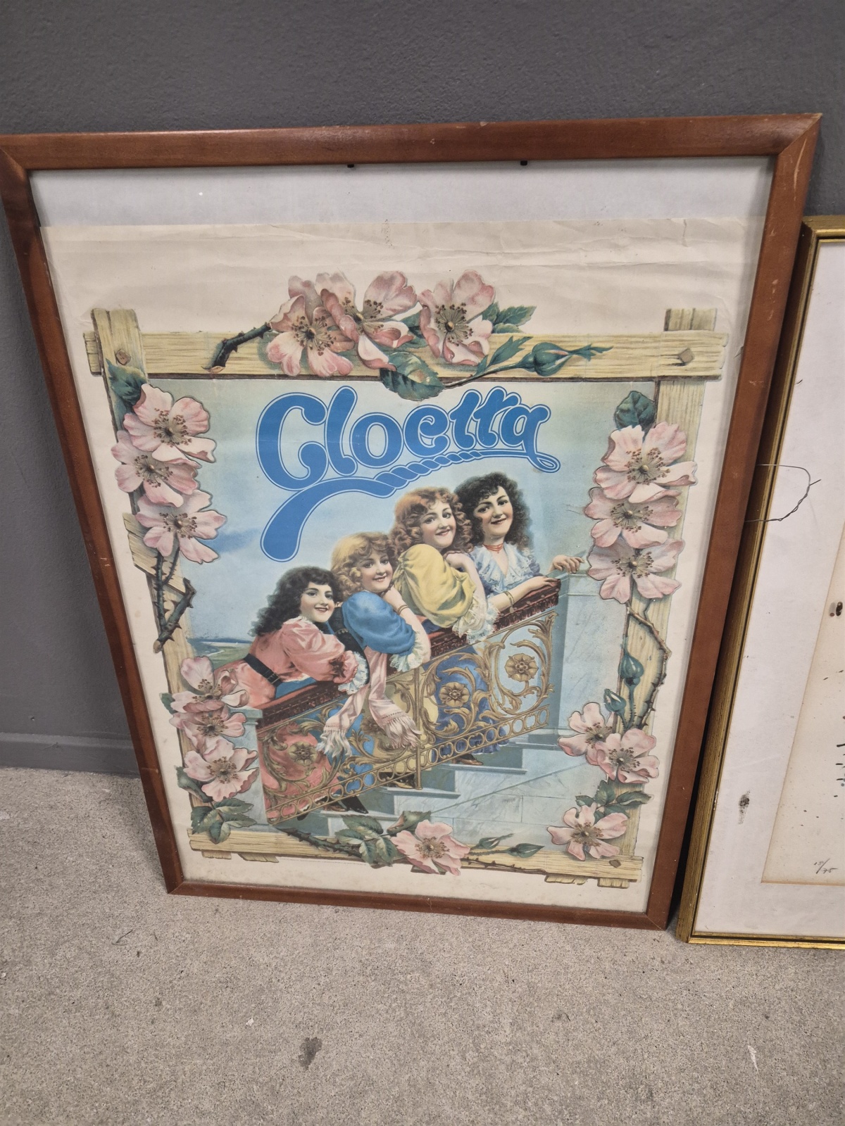 Tavlor 3 st bl.a Cloetta affisch, största mått 60 x 40 cm