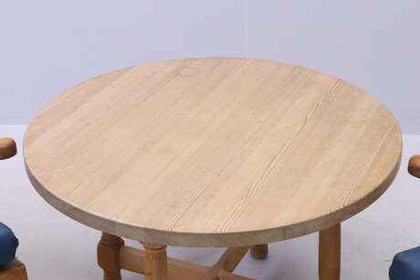 Bilder Karmstolar 2 st + bord, Krogenes Möbler, Norge, 1900-talets andra hälft, furu, bordets diameter 90 cm, höjd 60 cm