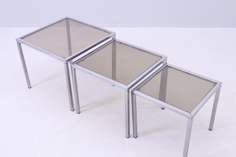 Satsbord, 3 st, metall och glas, H=43 50x50 och mindre