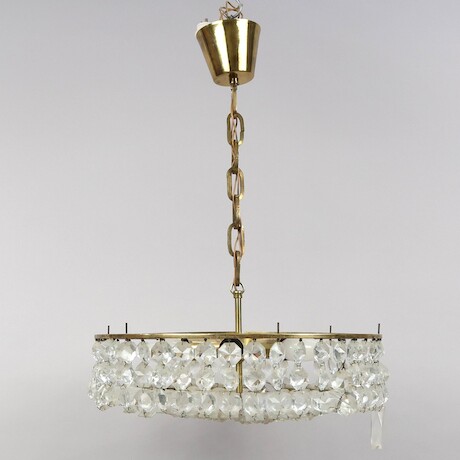 Bilder Taklampa, 1900-talets andra hälft, stomme i mässing, behängd med prismor, diameter 41 cm