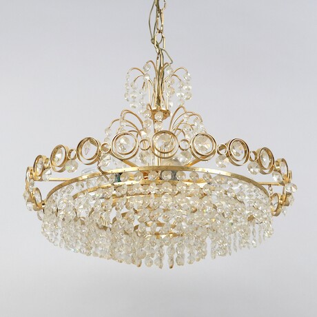 Bilder Taklampa, 1900-talets andra hälft, stomme i gulmetall, behängd med prismor, diameter 41 cm