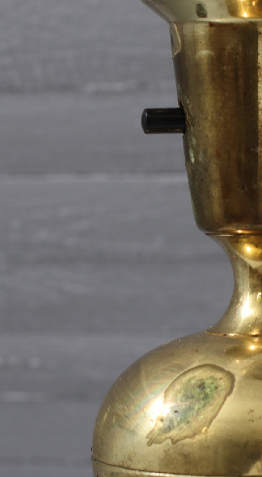 2 stycken (1 par), mässing, 1970-tal, ställvis med mindre svarta prickar/fläckar, höjd 44 cm. (vån3)