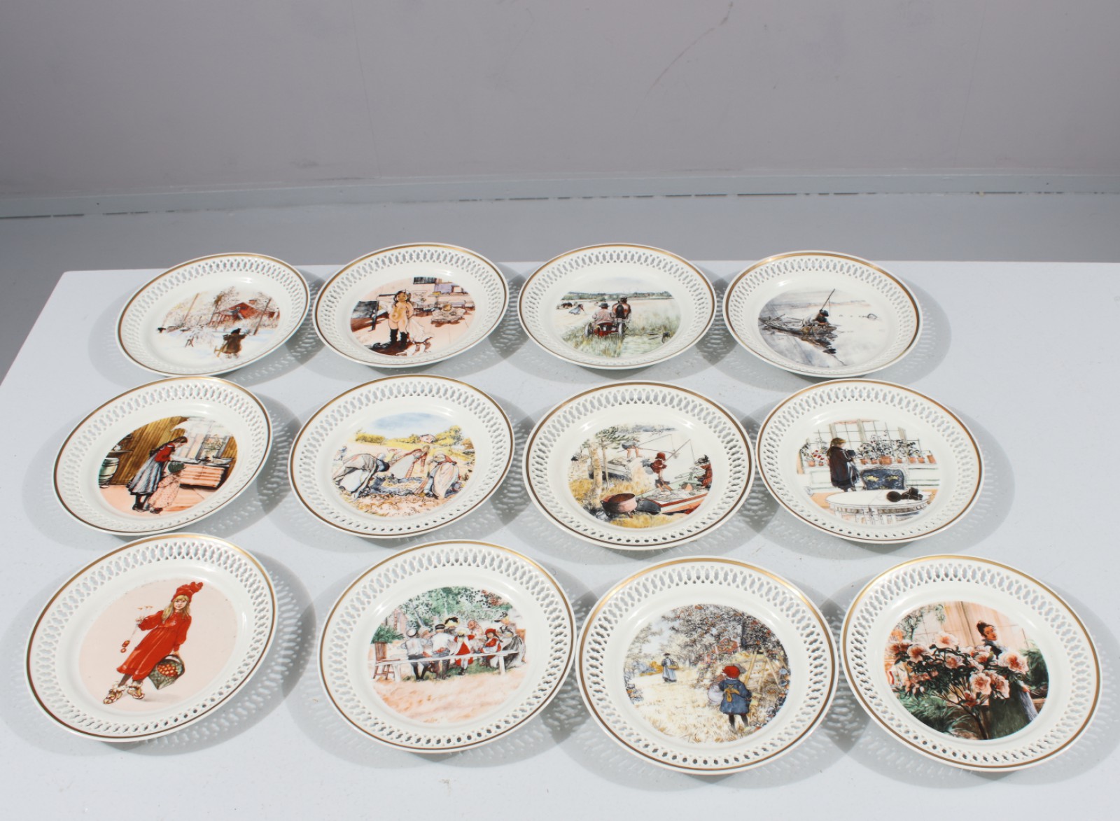 12 stycken, motiv efter Carl Larssons bilder, diameter 17 cm. (vån3)