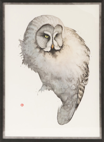 Färglitografi, lappuggla. Signerat och numrerat. Inramat.