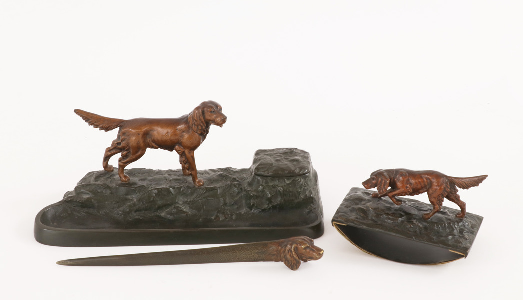 Brons. Med dekor av hundar. Brevkniven signerad.