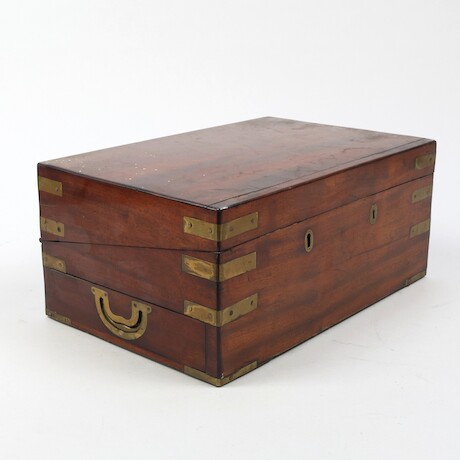 Skrivschatull, 1800-tal, mahogny med mässingsbeslag, filtkläddaskiva, 43 X 19 X 28 cm