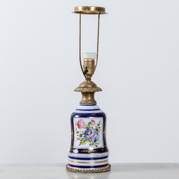 Bordslampa, bemålat porslin och bronserad metall, 1900-talets början