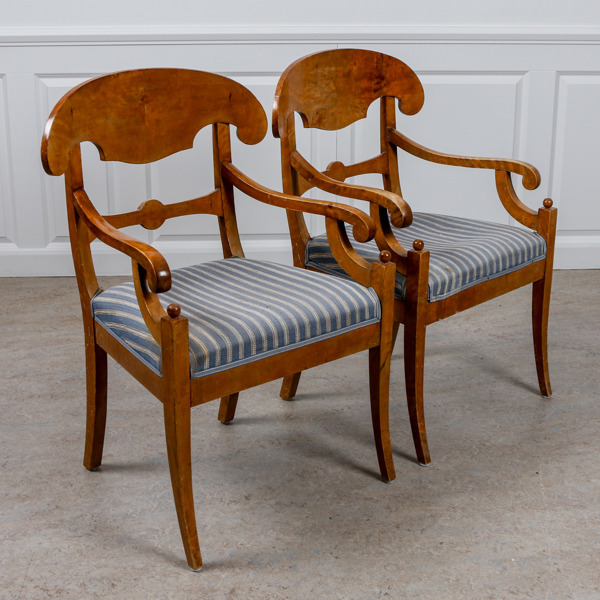 Karmstolar, 1 par, Karl Johan-stil, björk, 1900-talets första del