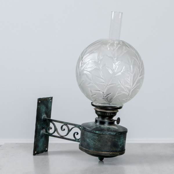 Väggfotogenlampa, metall, glas, 1900-talets första del