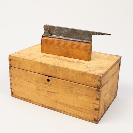 Bilder Sockerlåda med kniv, 18/1900-tal. Med extra kniv. 39x24x18 cm.
