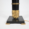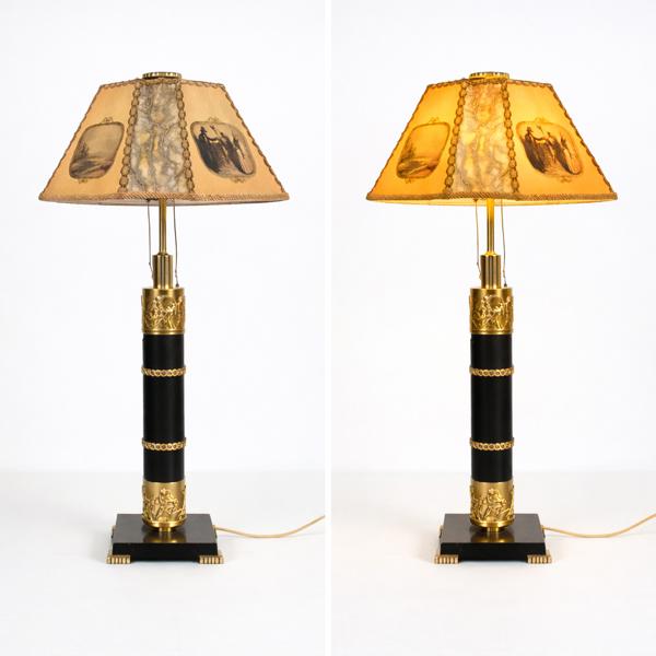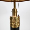 Höjd inkl. skärm 70 cm. Stomme i svartlackerad mässing. Märkt undertill 8019.