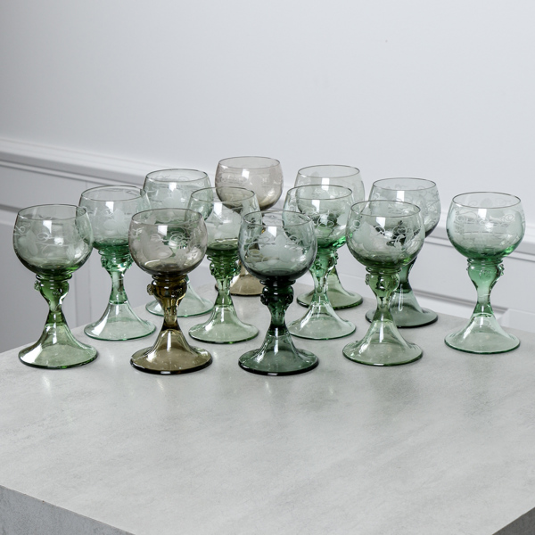 Vinglas, remmare, 12 st, etsad dekor
