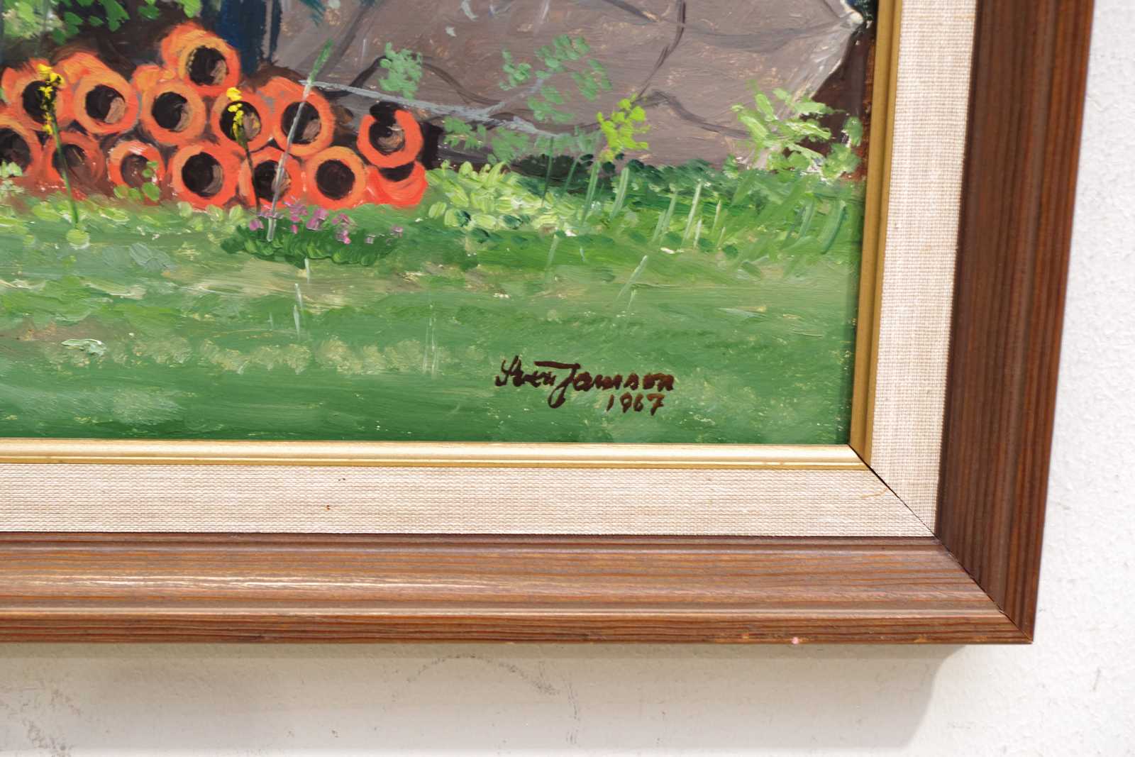 Auktioner Konst & Grafik TAVLA, oidentifierad konstnär, olja på pannå, signerad samt daterad. 45x54cm bildmått