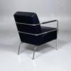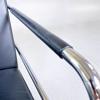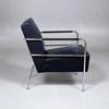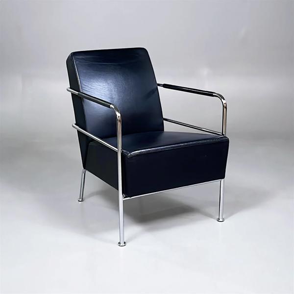 Benställning i kromat stål. Klädsel och armledare i svart läder.