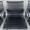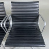 4st Designstolar från Vitra. Modellen Aluminium Chair EA 108 är formgiven av Charles & Ray Eames 1958. Klädd i svart läder med stativ i borstad aluminium. Snurrbar. Nypris ca 40 000:-/st