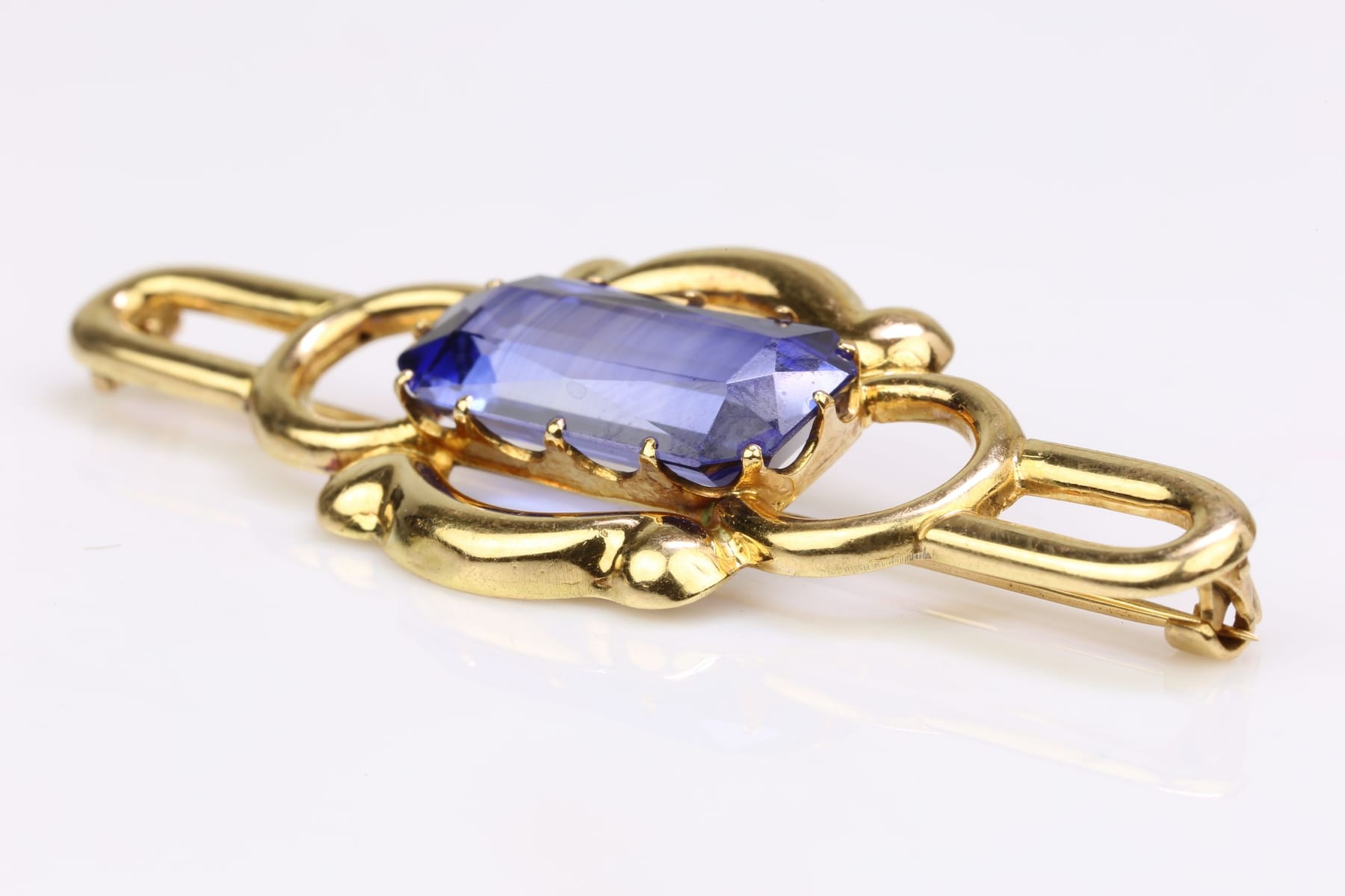 Bilder BROSCH med smaragdslipad syntetisk blå safir, guld, 18 k, ca 6,42 g, Juvelfabriken Ab, Stockholm, 1940