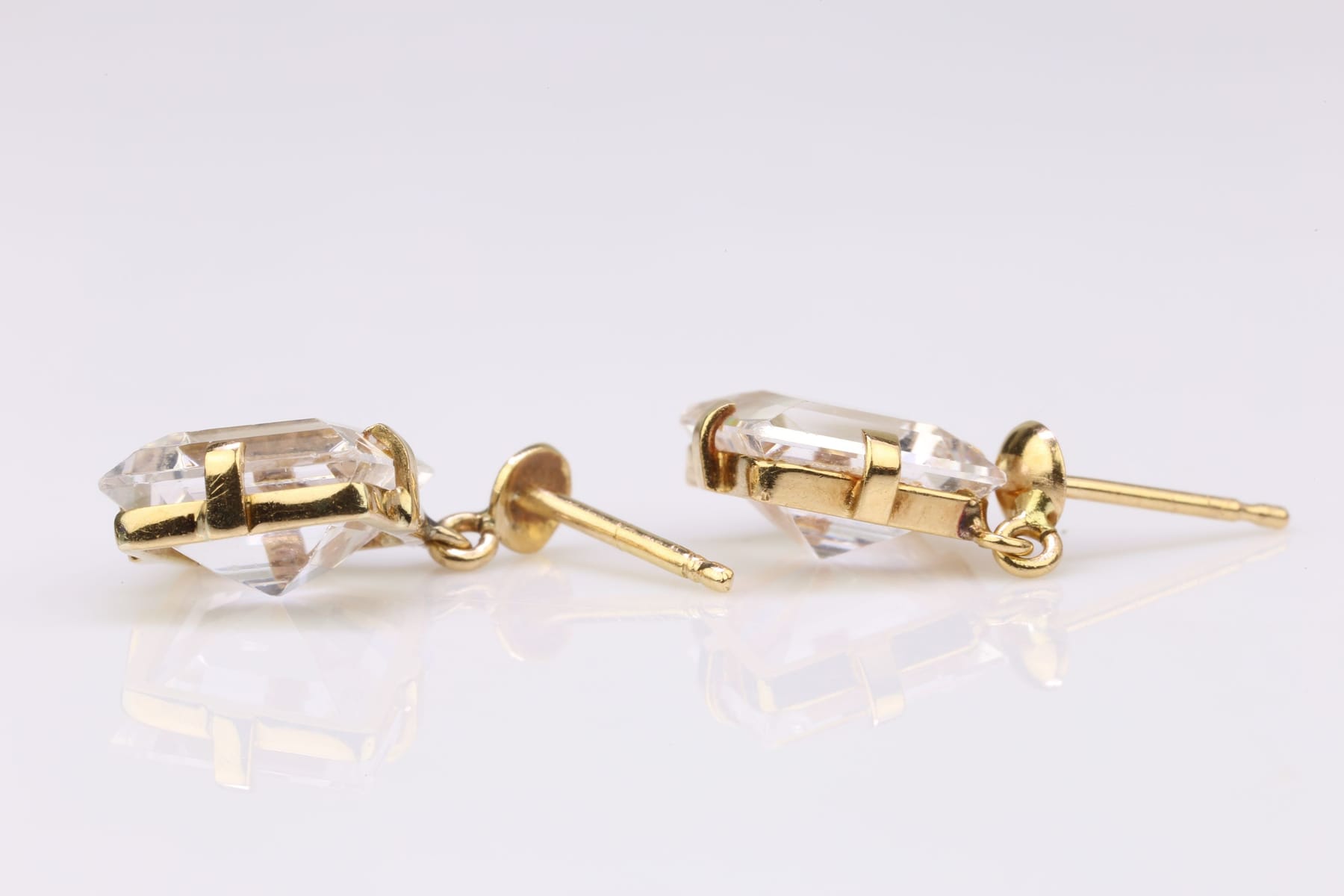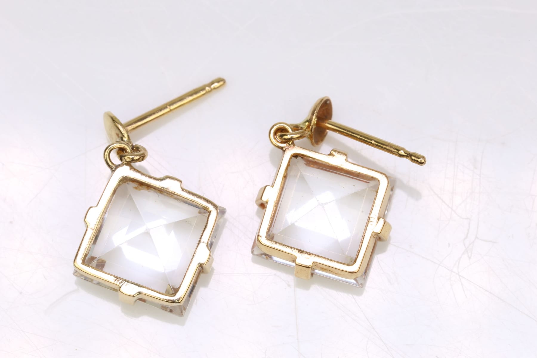 ÖRHÄNGEN, ett par, med carréslipade syntetiska vita spineller, guld, 18 k, ca 2,17 g