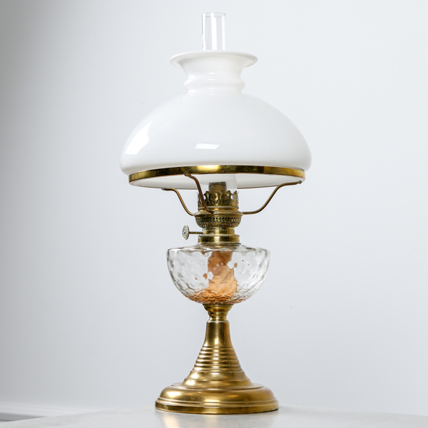 Fotogenlampa, glas och mässing, 1900-talets mitt