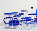 "BLÅ KANT" BERGDALA, 61 delar, glasservis, handblåsta.