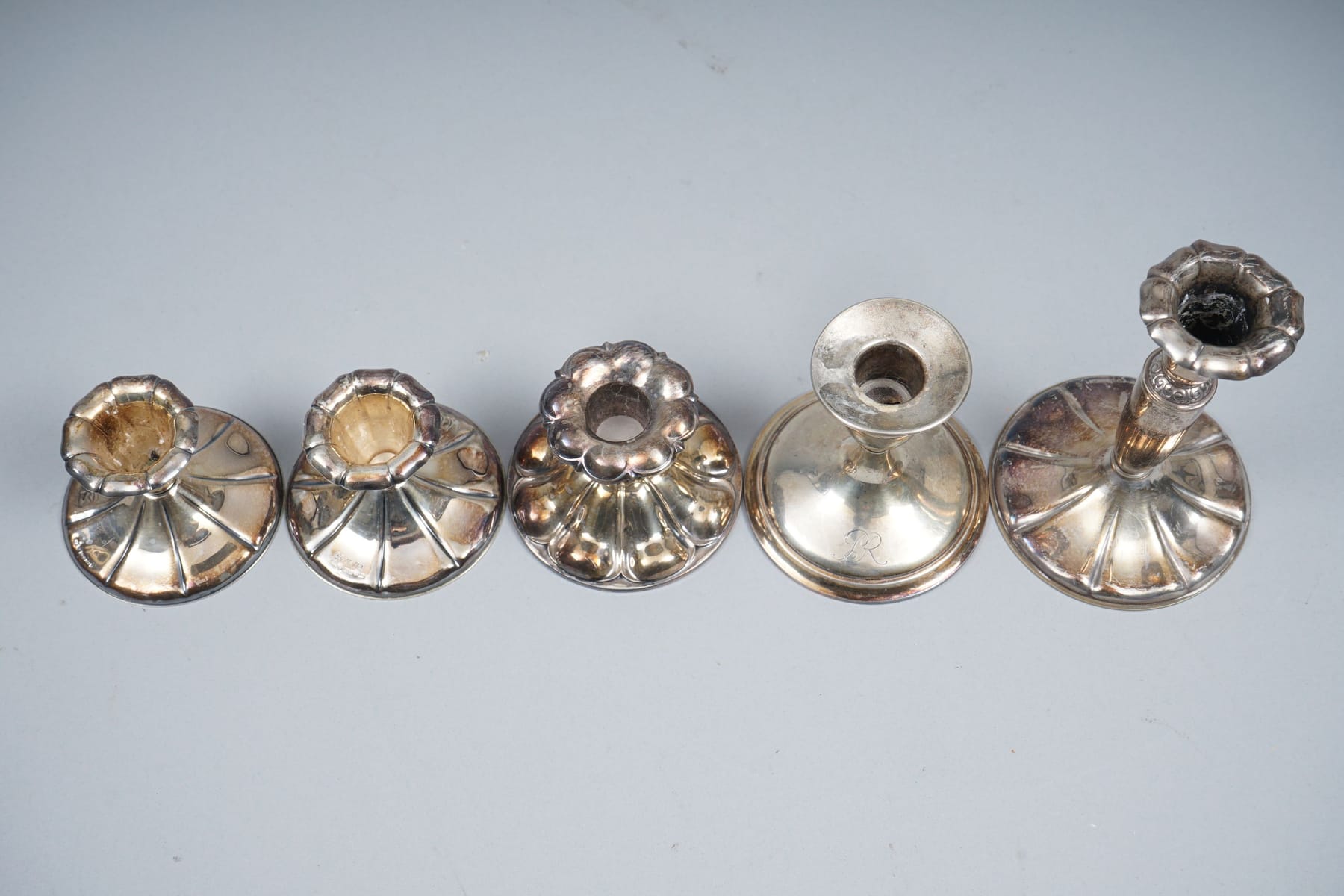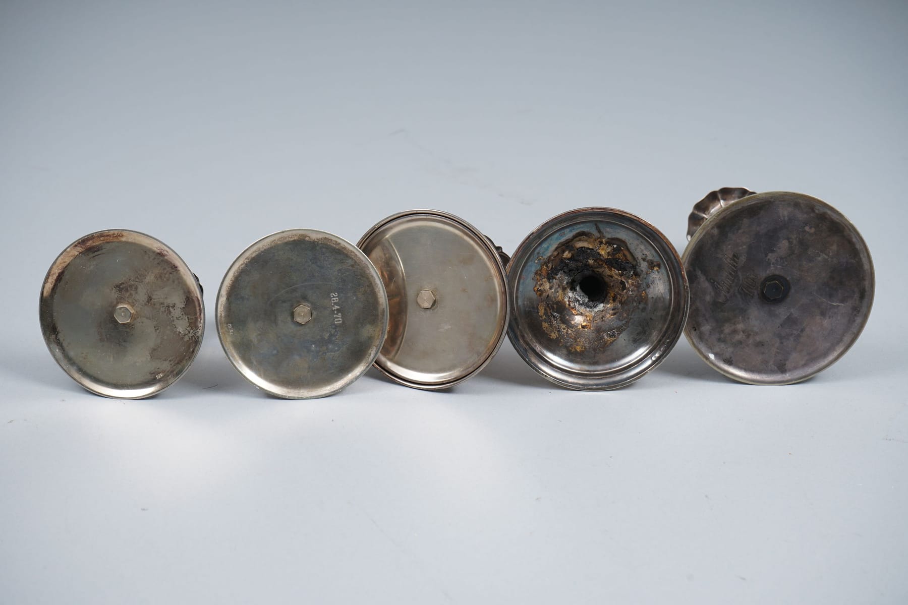 Bilder 5 kpl kynttilänjalkoja, hopeaa ja terästä