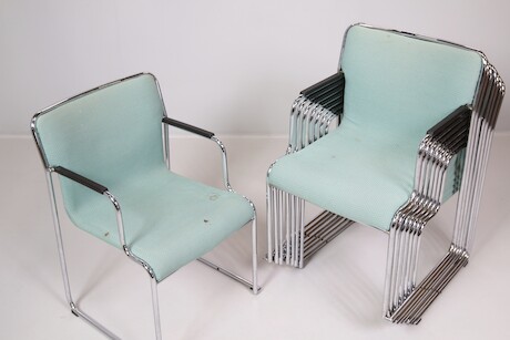 Bilder Karmstolar, 8 st, modell 77, Lammhults, Börge Lindau och Bo Lindecrantz, krom och textil, 1900-talets senare del