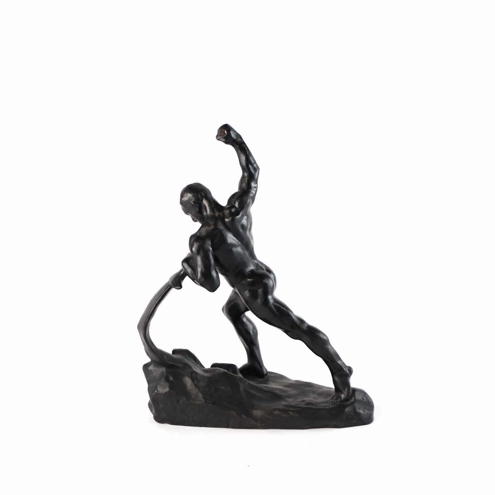 Auktioner Skulpturer & Konsthantverk SKULTUR, järn, signerad och daterad 1969. H: 26cm. OBS lagad arm och trasig hammare.