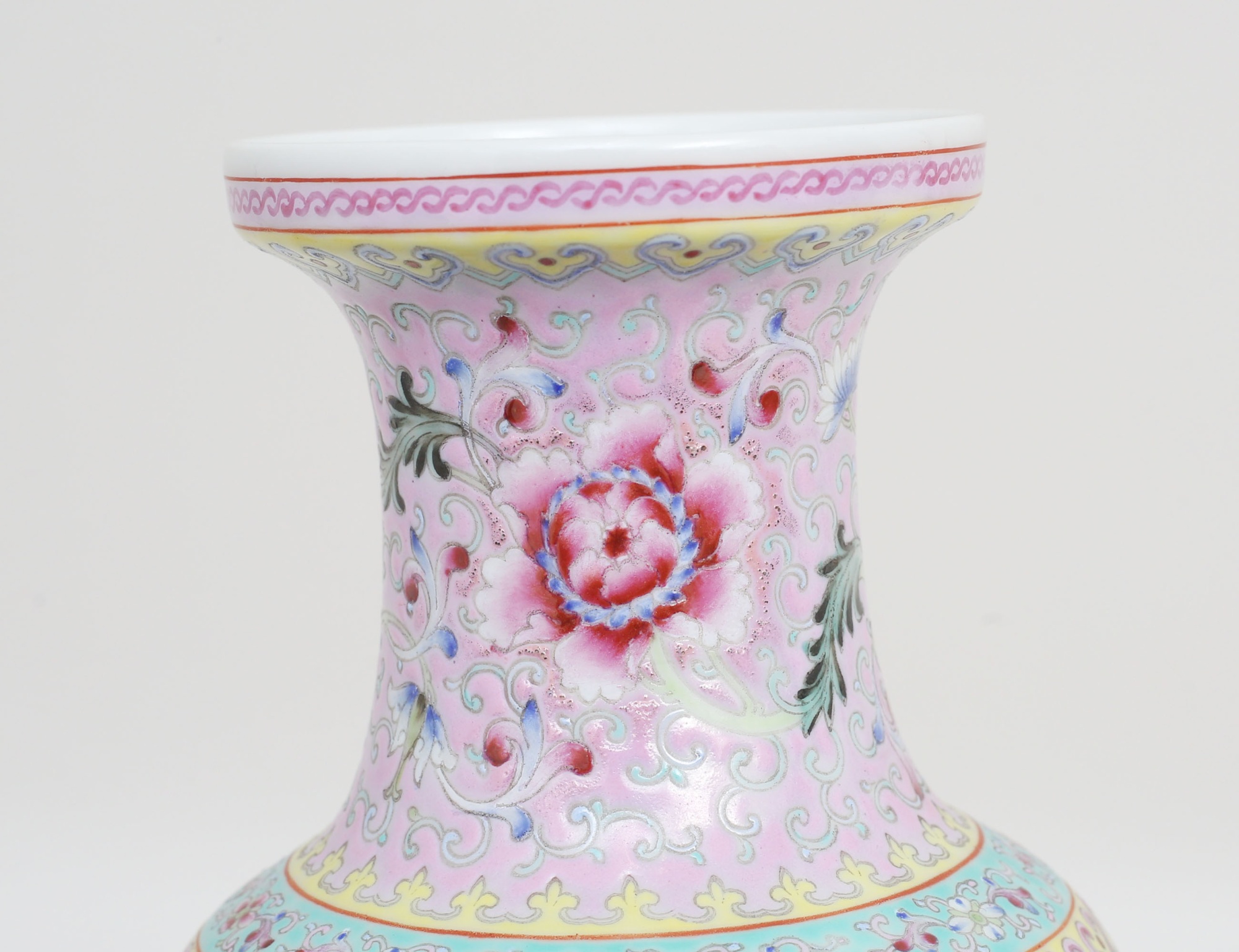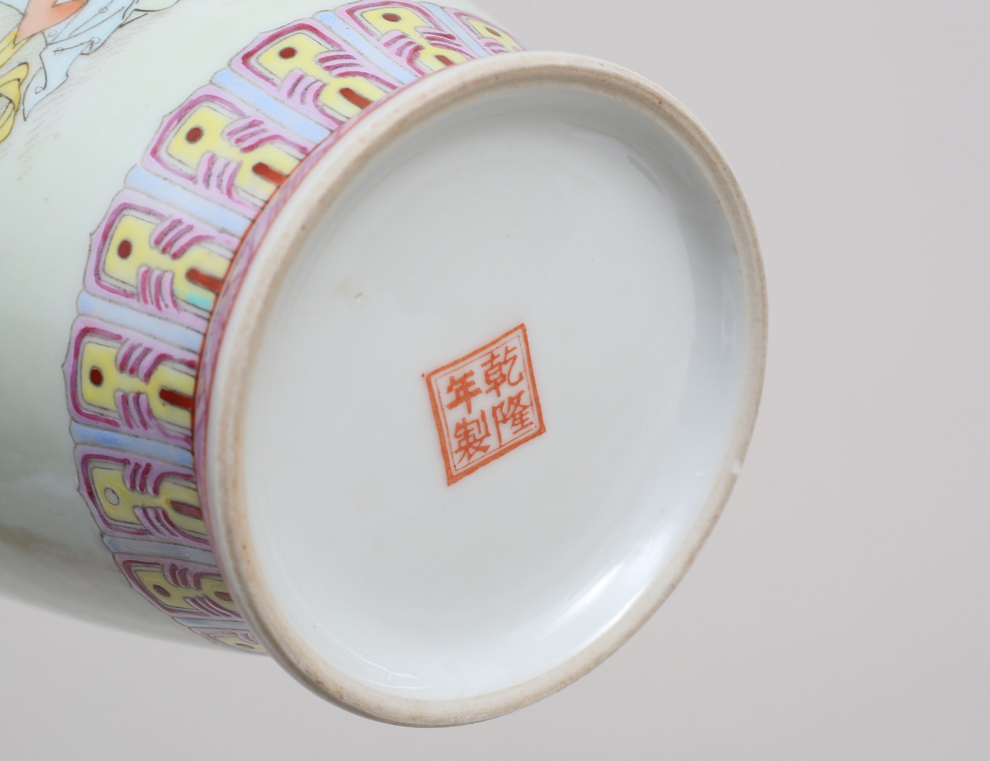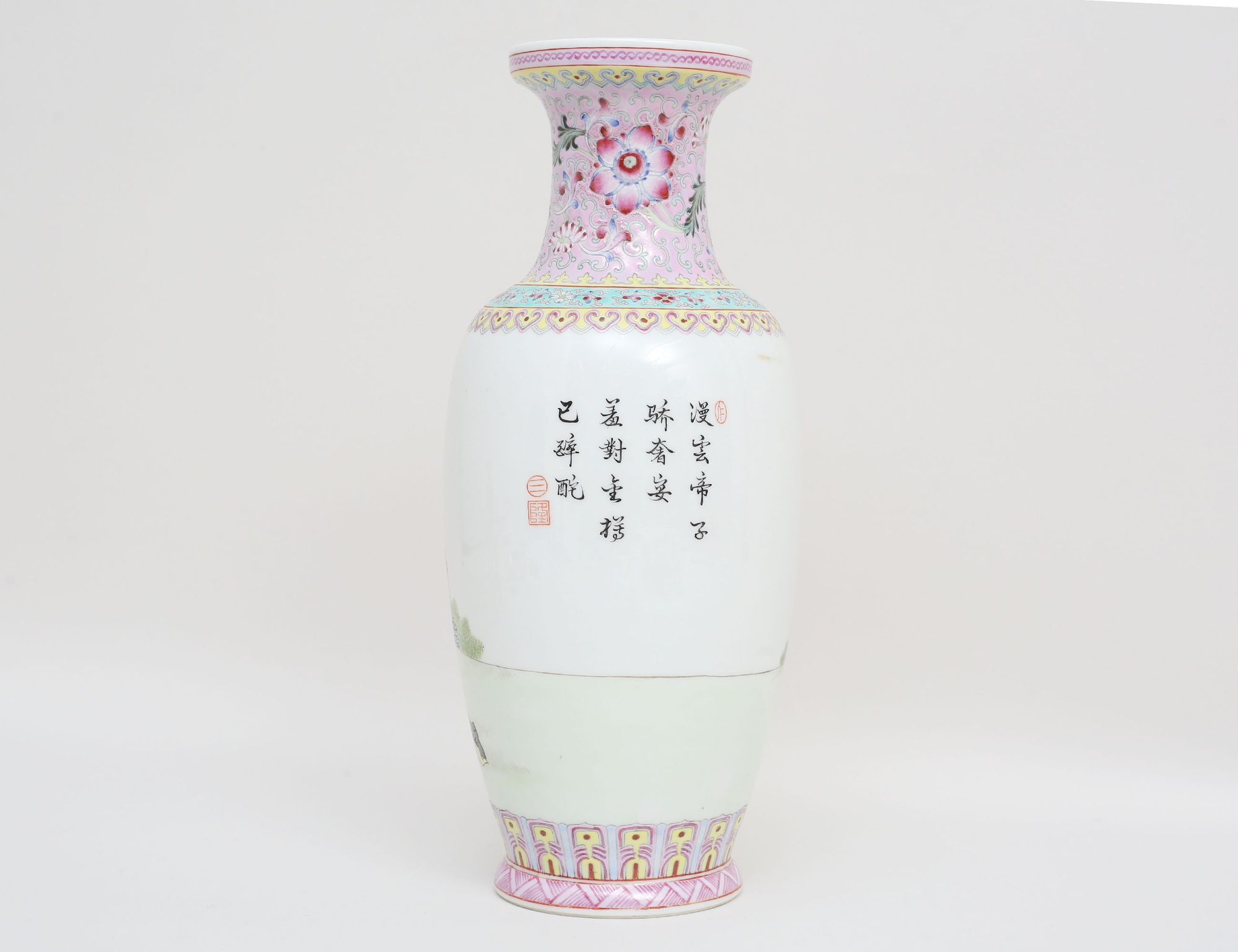 troligen republik (1912-1949), porslin, polykrom dekor av figurer och skrivtecken, botten med stämpel, höjd 30