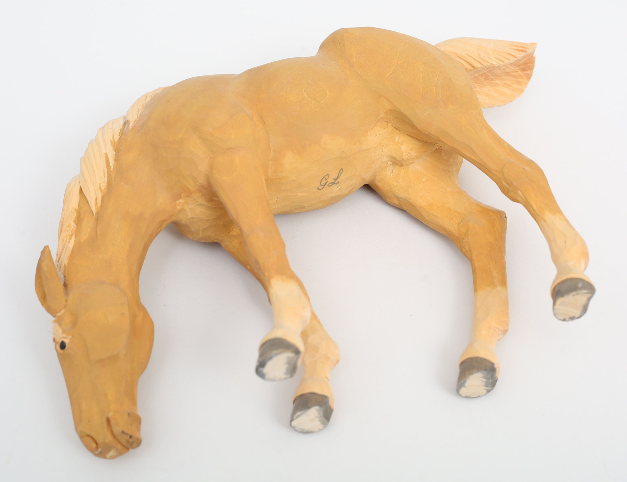 betande häst, träskuren, monogramsignerad, höjd 16, bredd 21