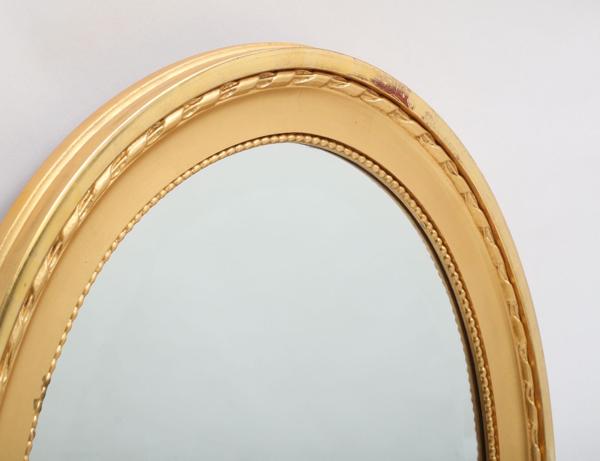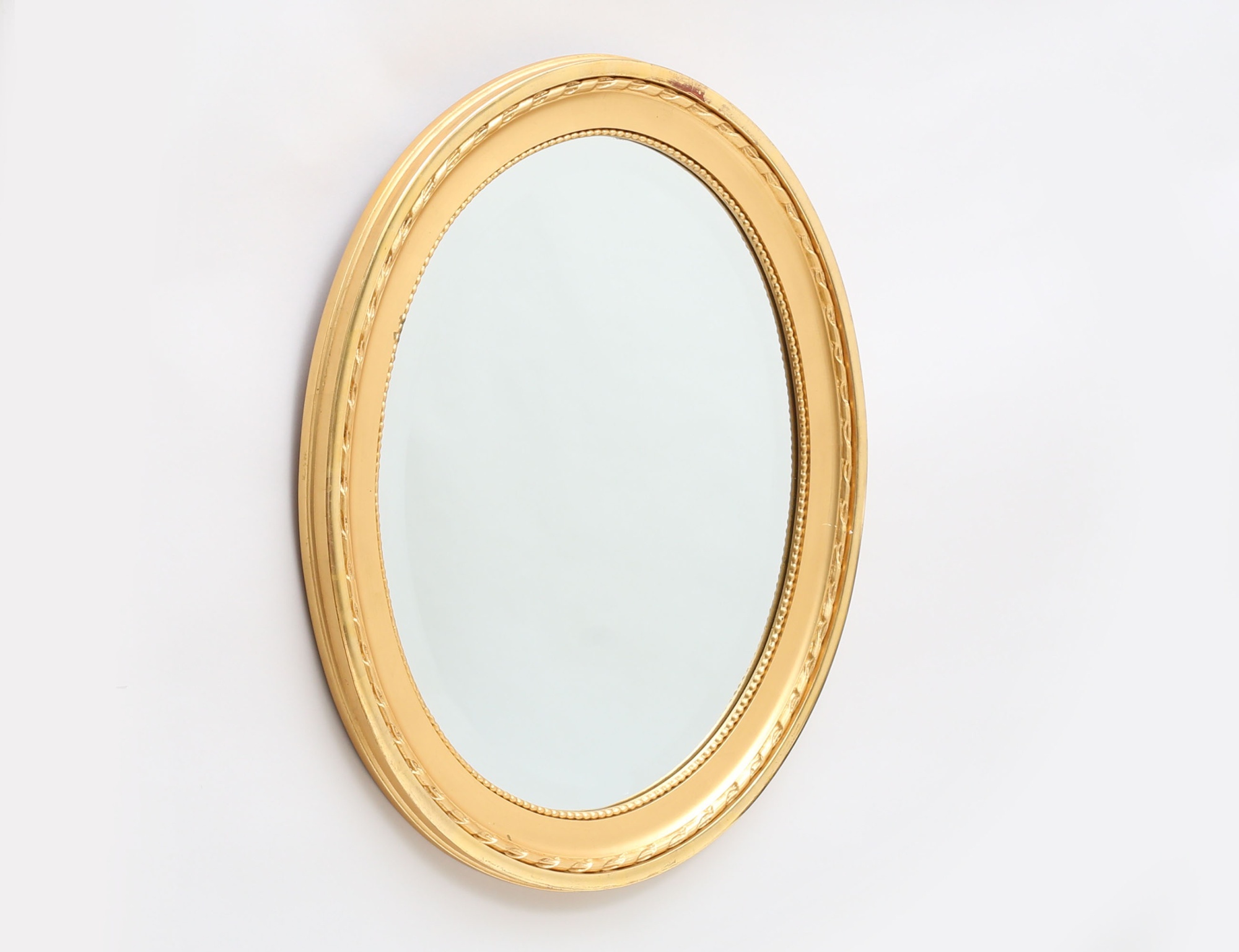 oval ram, förgylld med bladguld och slagmetall, fasettslipat glas, 63x53