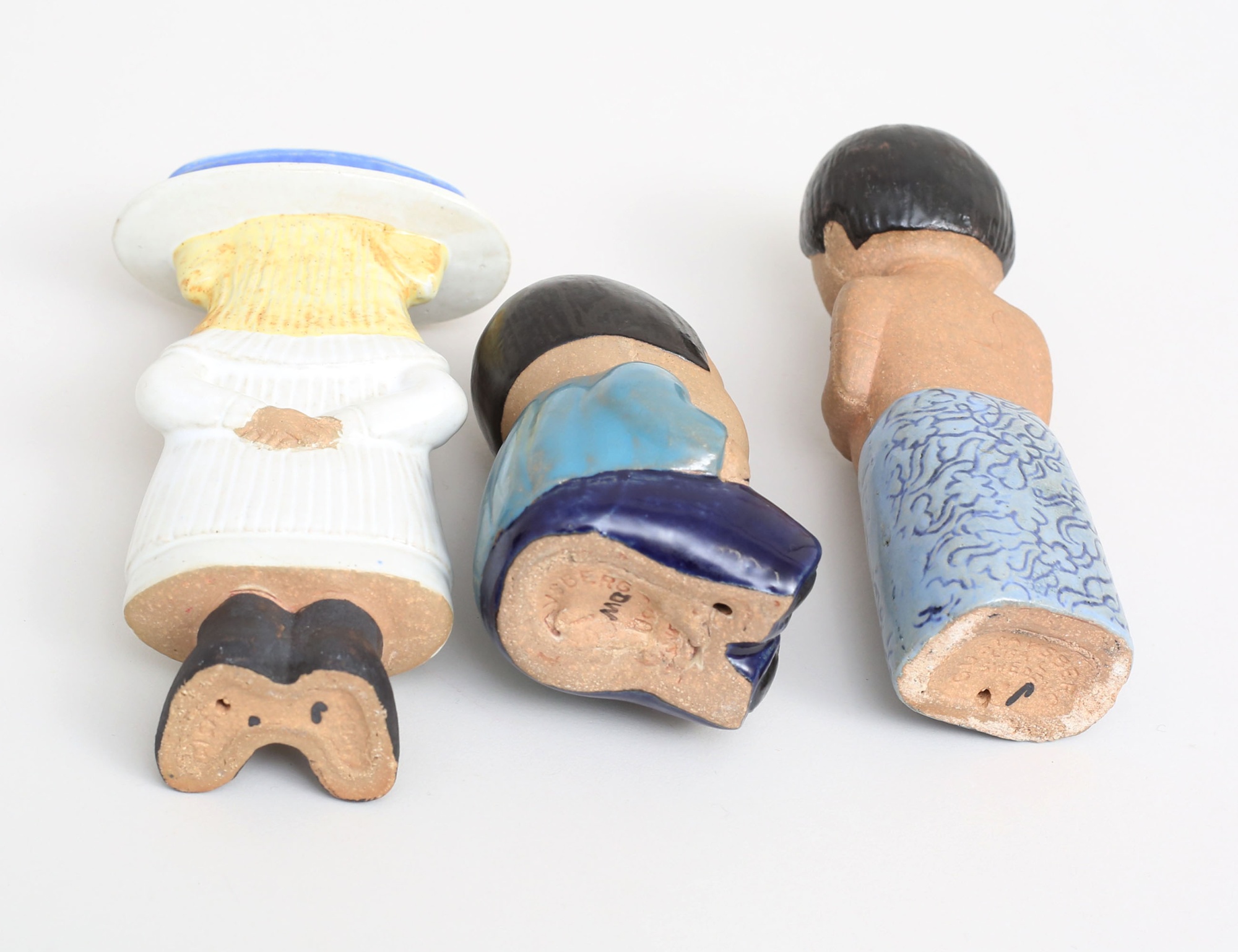 3 figuriner glaserat stengods, "Maria" och "Mei", ur serien All världens barn, höjd 14/9,5, samt "Victoria" ur serien Sekelskifte, höjd 15