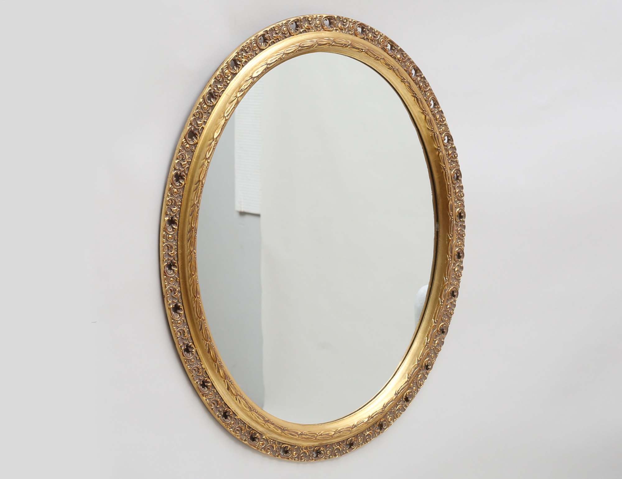 oval förgylld delvis genombruten ram, reliefdekor, 70x60