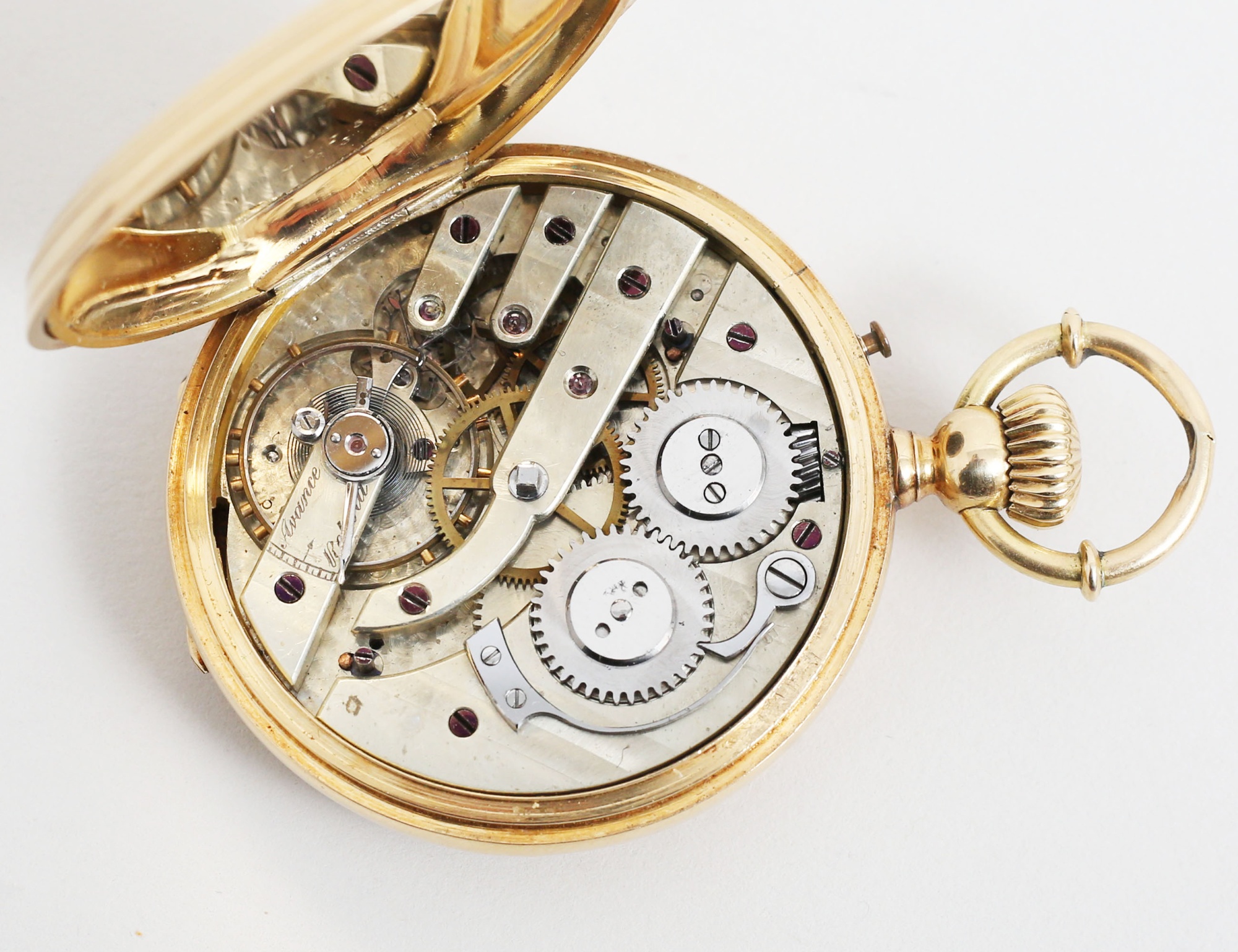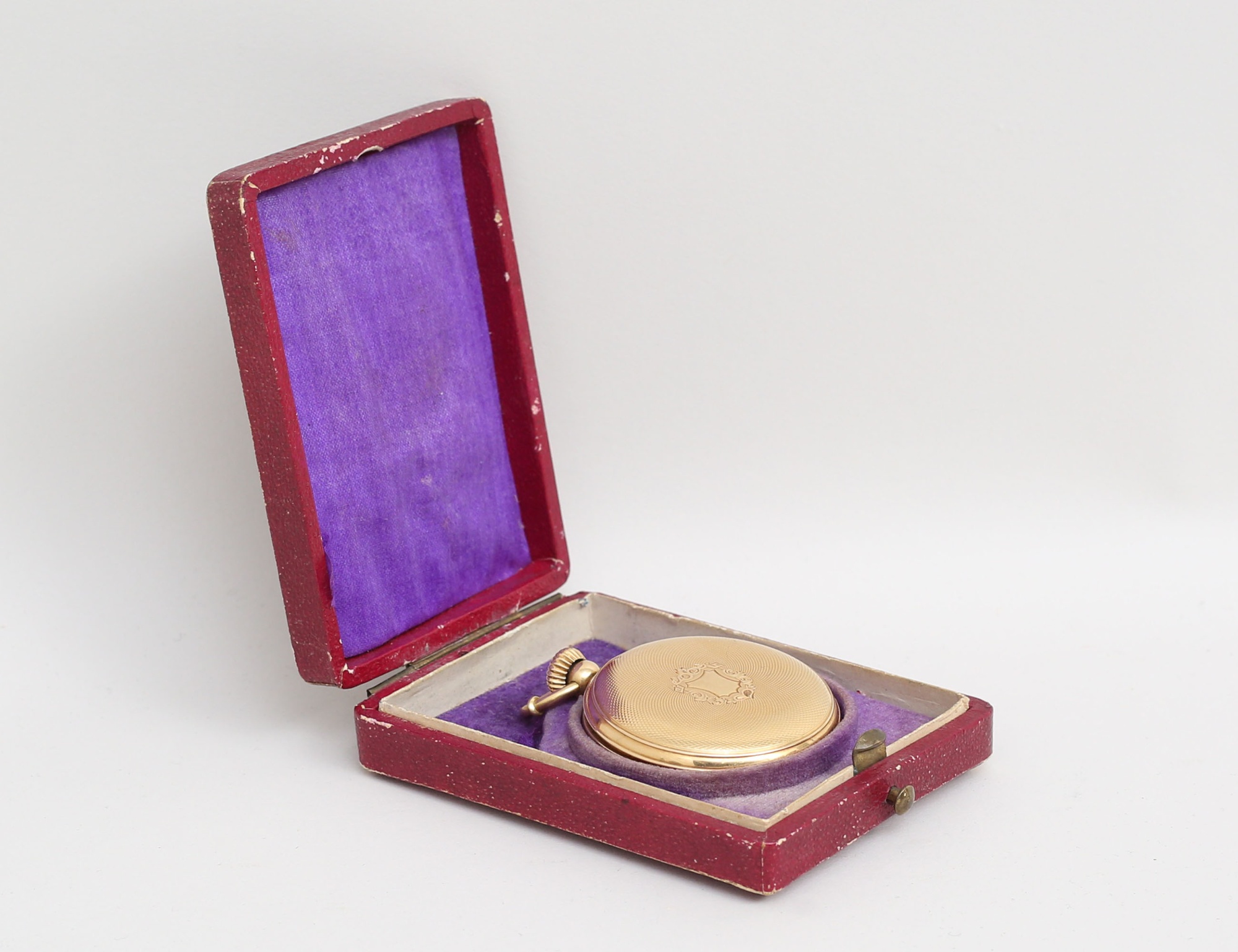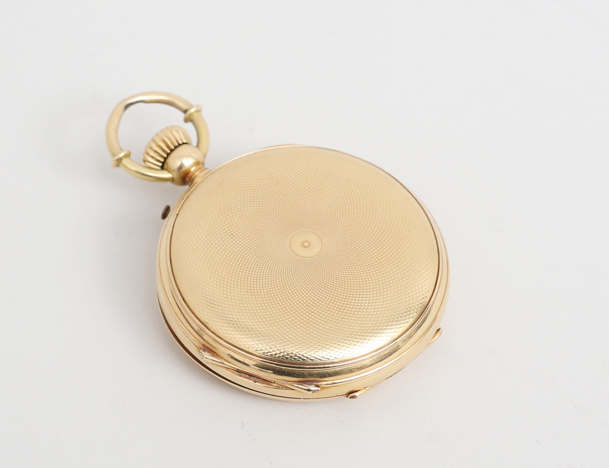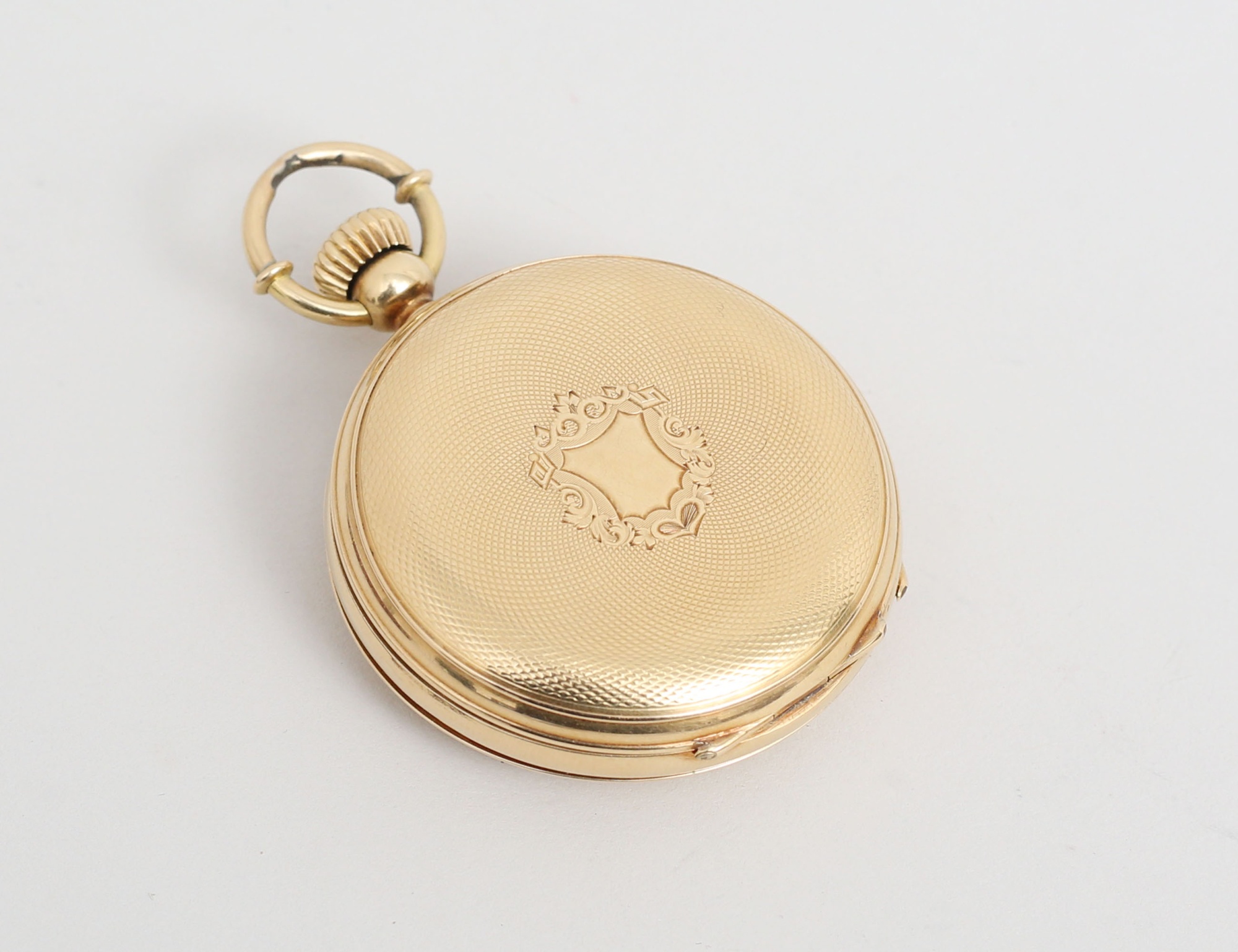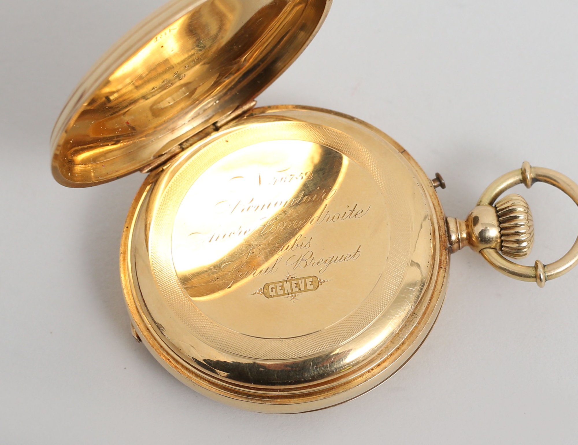 18k även i innerboetten, Spiral Briquet Geneve c.1900, fungerar vid katalogiseringstillfället, heltäckande reliefdekor, bruttovikt 73,32 gram, originaletui