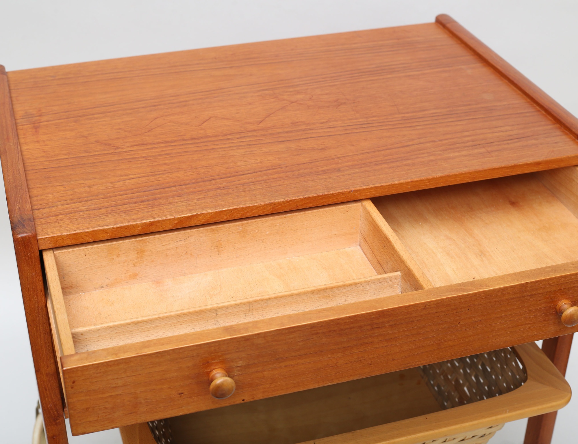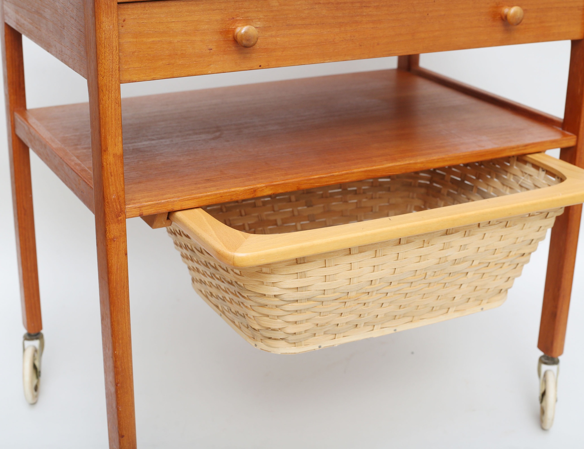 Erik Gustafssons Möbelfabrik Brittatorp, teak, en låda samt ett hyllplan med underliggande korg, höjd 60, bredd 60, djup 40 (smärre bruksslitage)