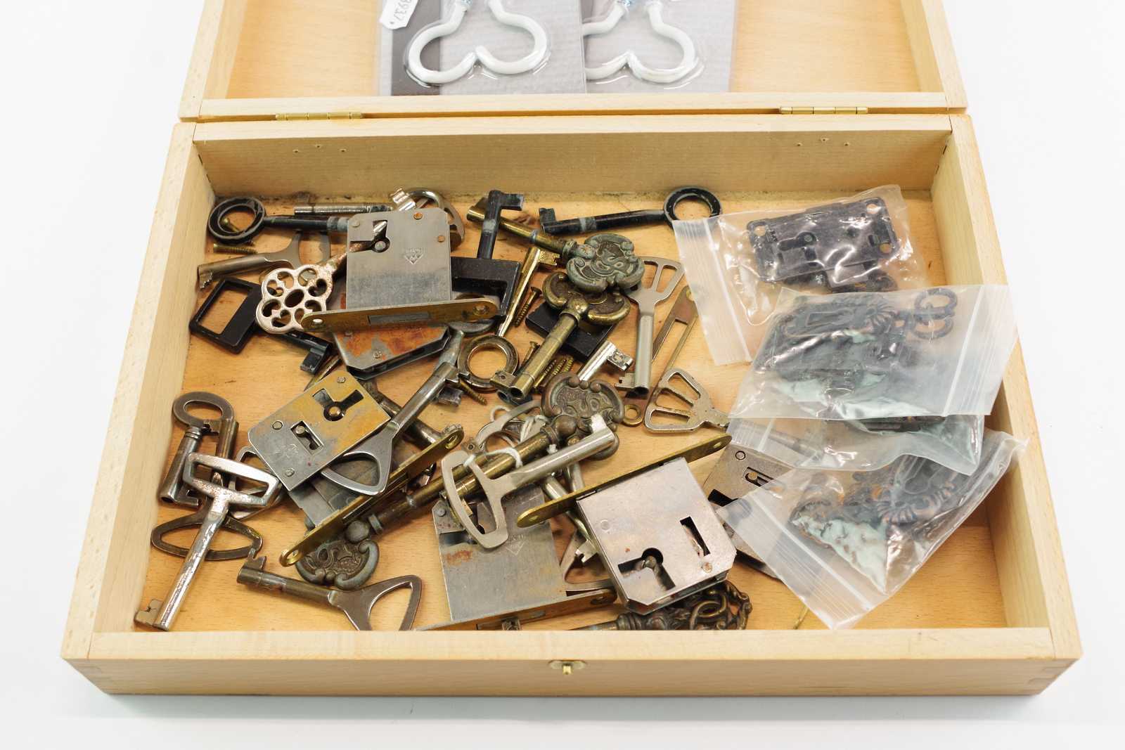 TRÄLÅDA 30*21 cm, KROKAR, BESLAG, NYCKLAR mm
