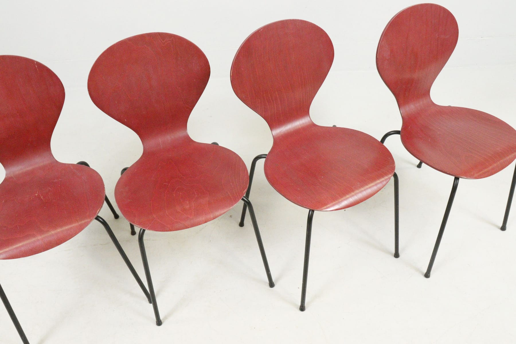 Stolar, 4st, Phoenix, Danmark, stapelbara, röda, böjträ