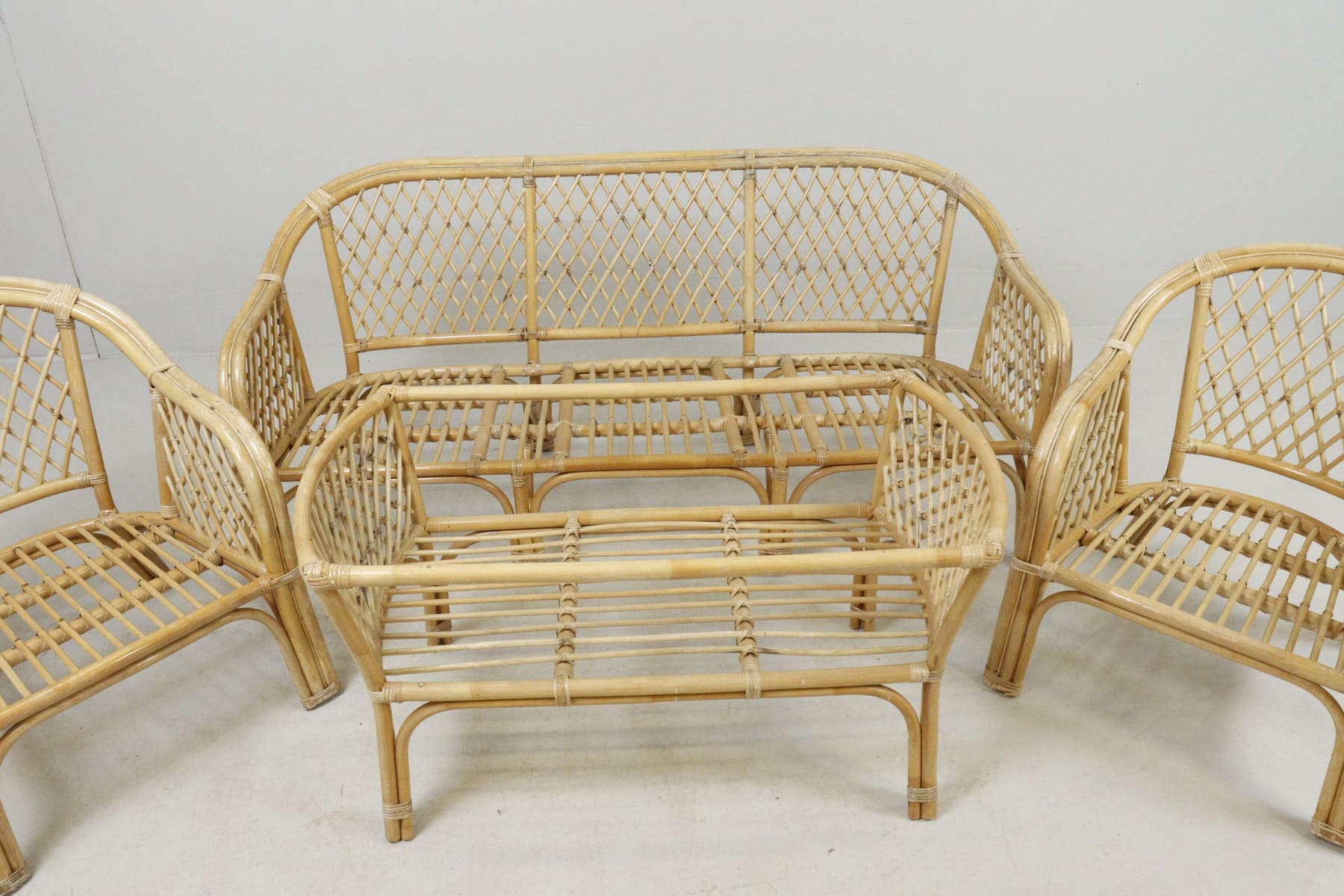 Bambumöblemang, bord, soffa och 2 fåtöljer