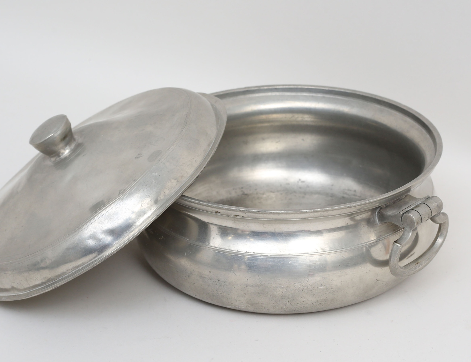 grötskål Adolph Fredrik Moberg (1816-1824), välvt lock, ledade handtag, höjd 15, diameter 21, fat Petter Lagerwall änka 1754, diameter 35 (2)