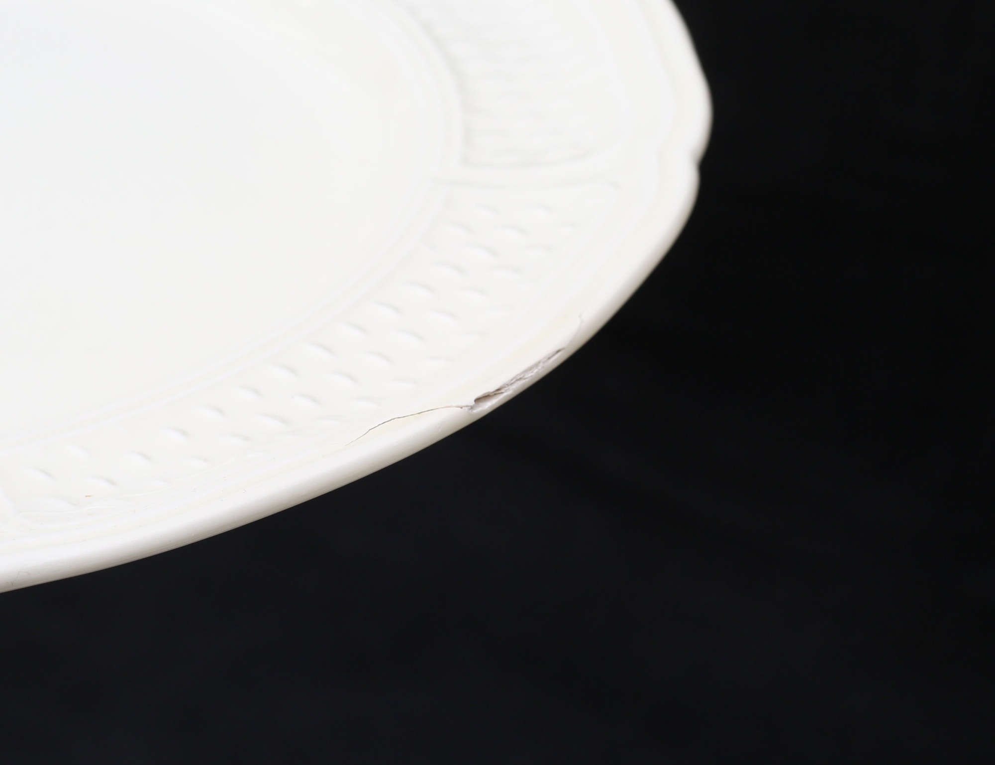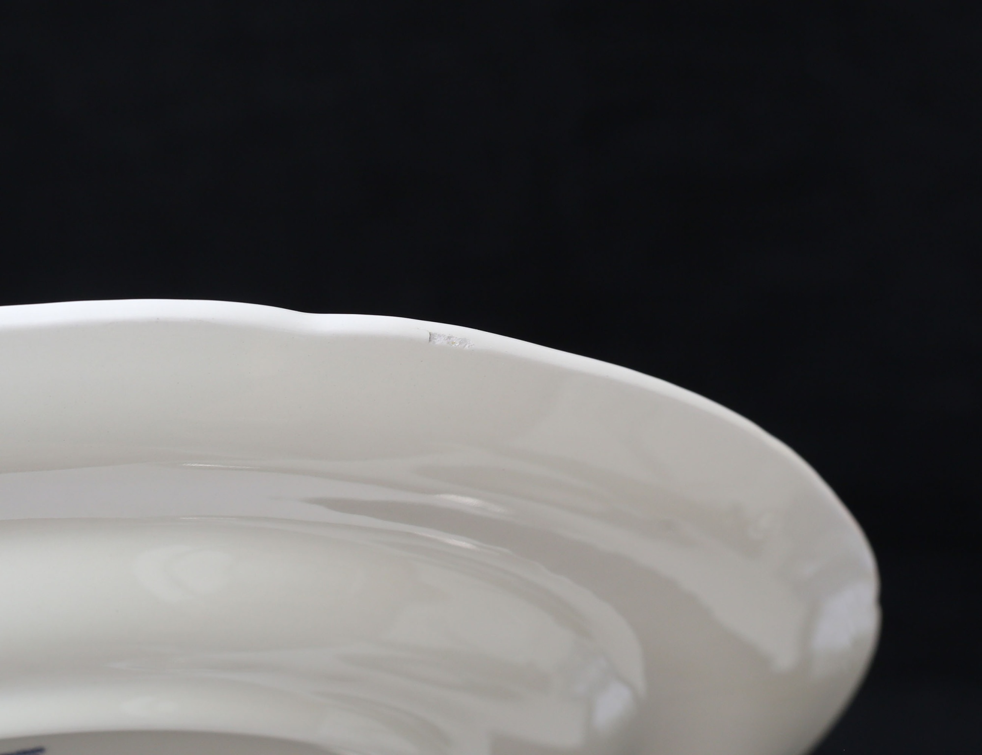 Frankrike fajans, efter äldre förlagam diameter 27 (en med tillverkningsdefekt, en med nagg)