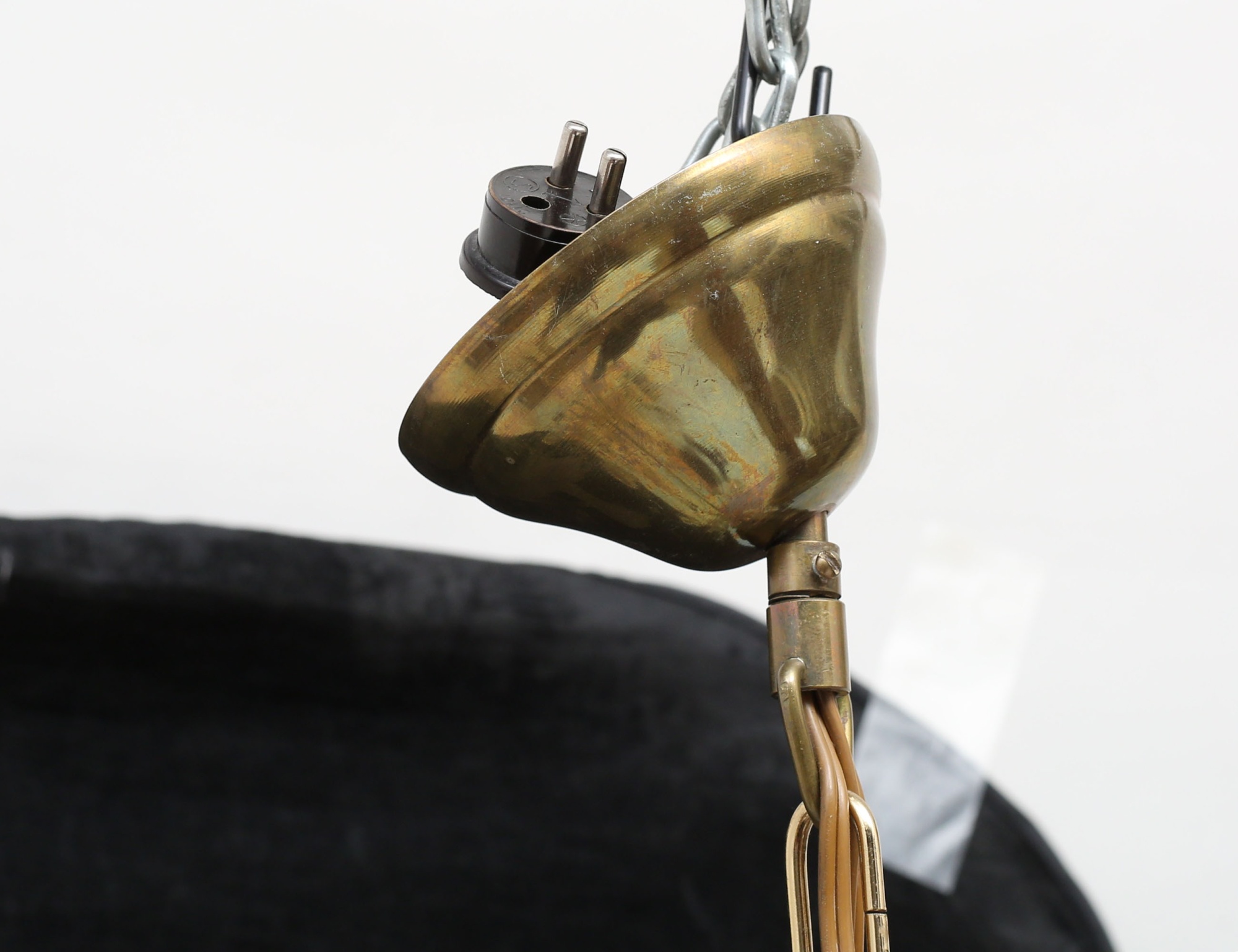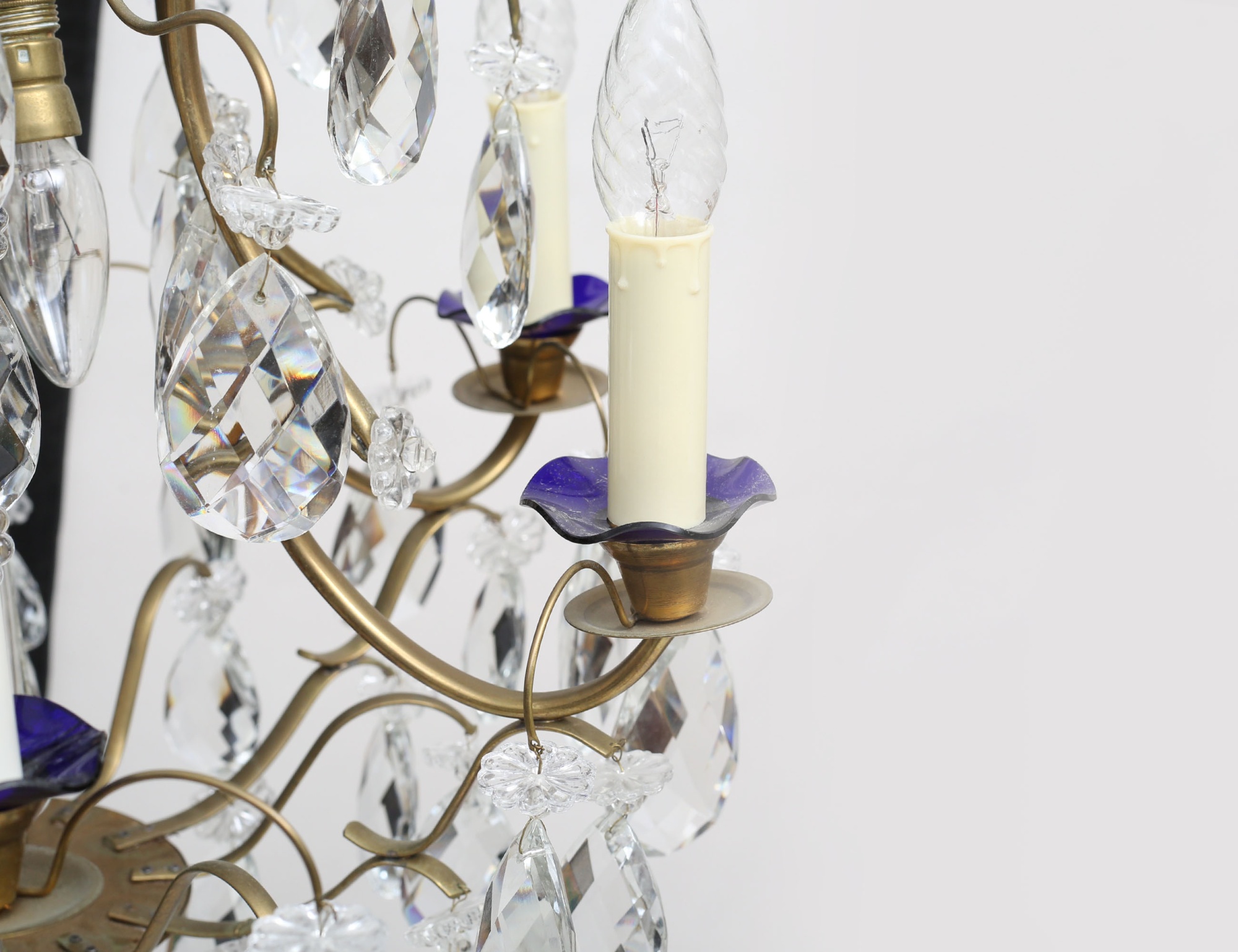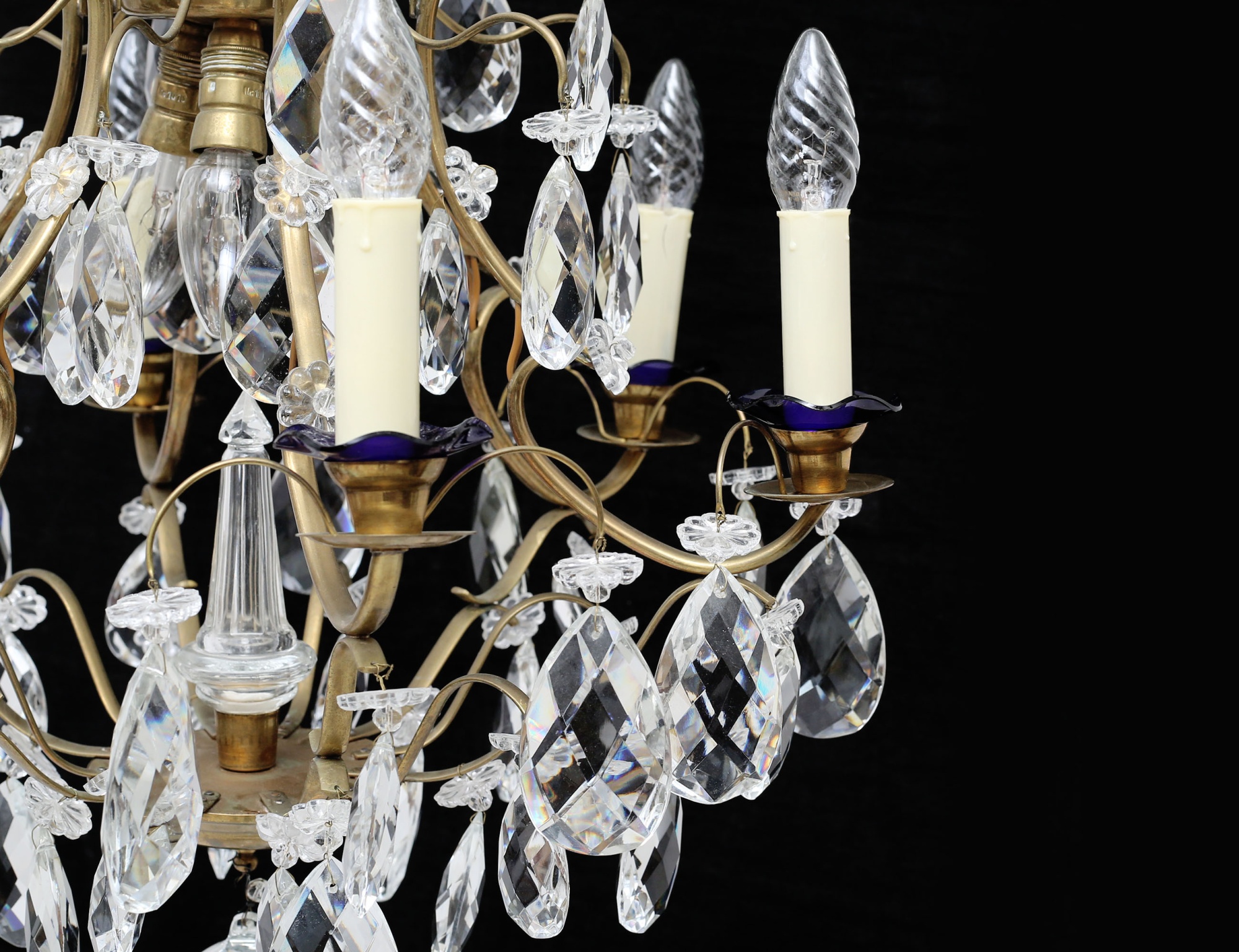 stomme i mässing, fasettslipade droppformade prismor, sex ljusarmar, glasobelisk, höjd 70 (100), diameter 50