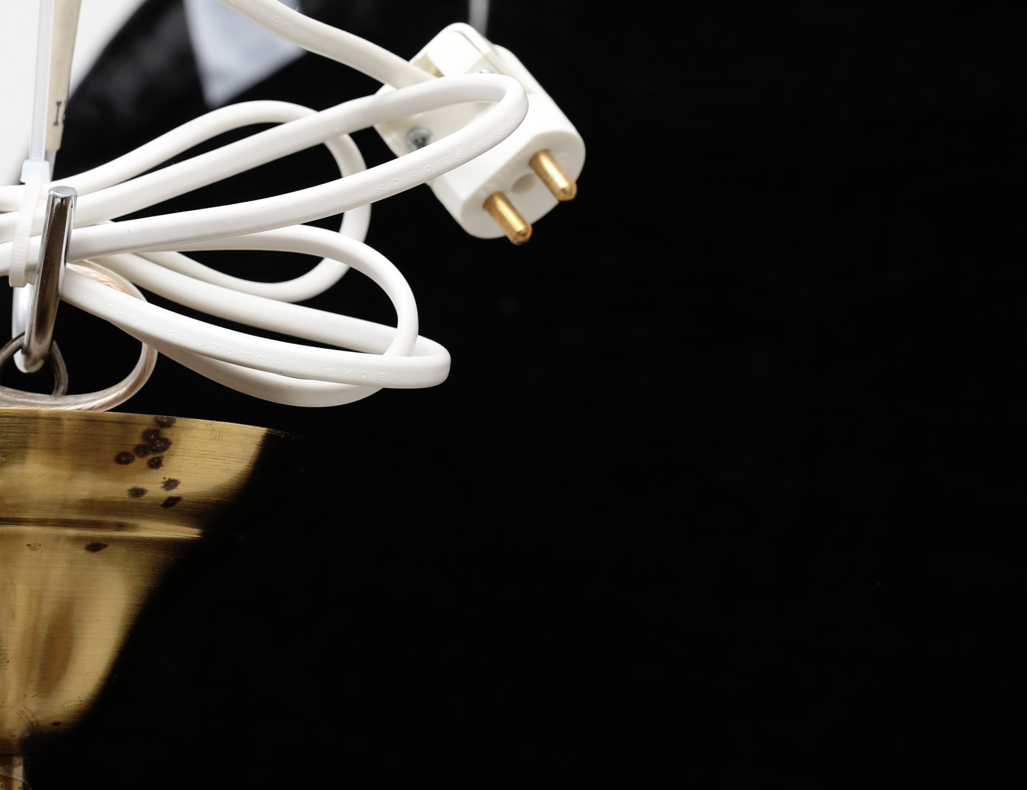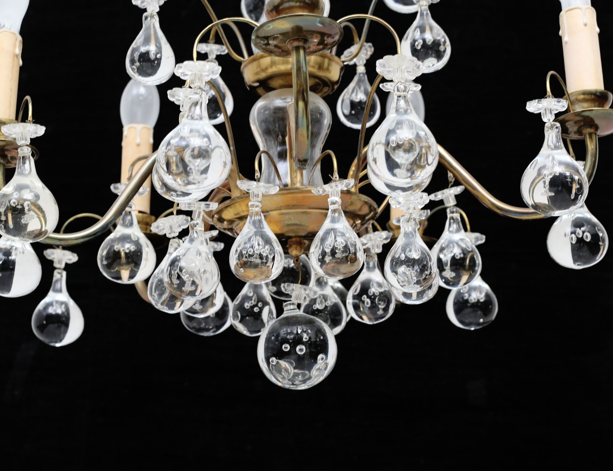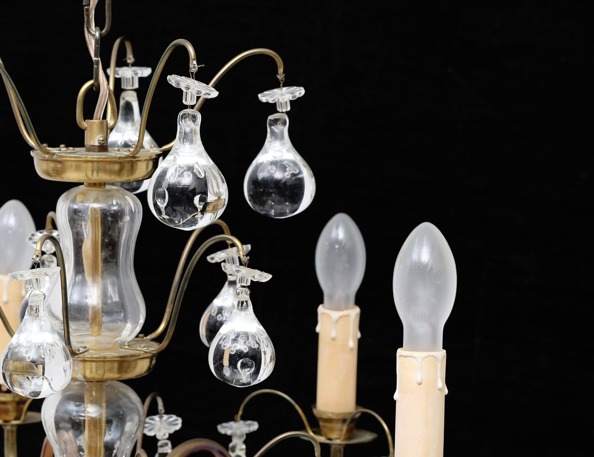 stomme i mässing, fem ljusarmar, droppformade prismor, höjd 60, diameter 50
