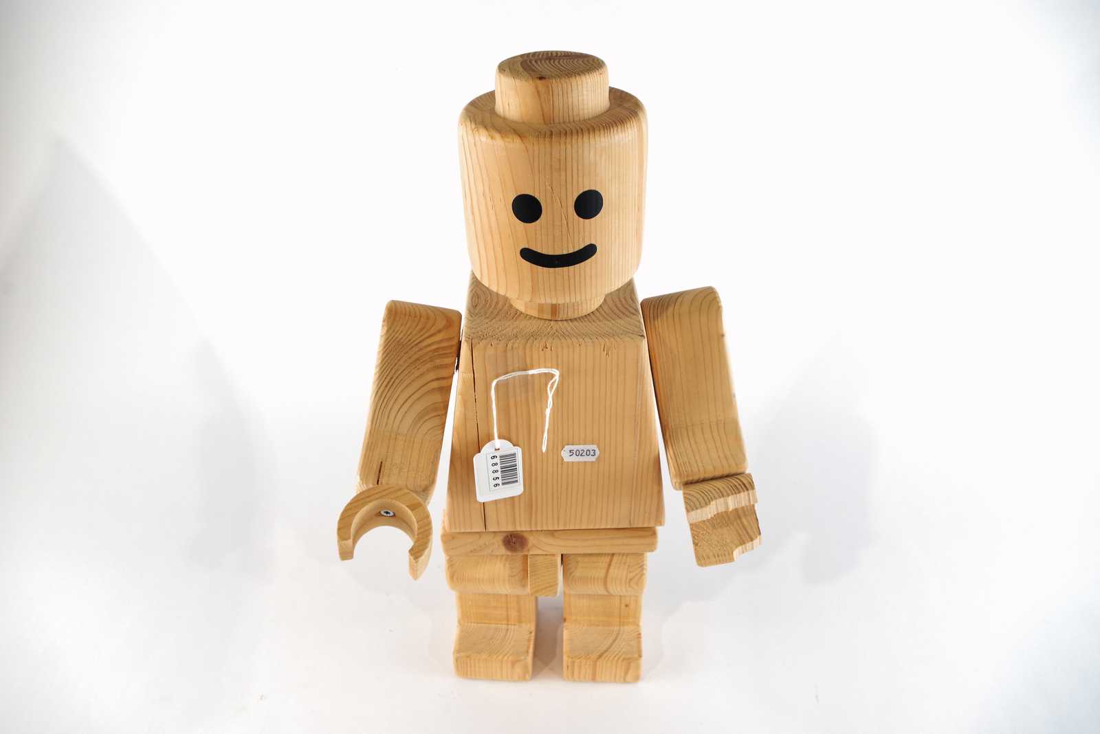 Bilder TRÄFIGUR form av legogubbe. H:44cm.